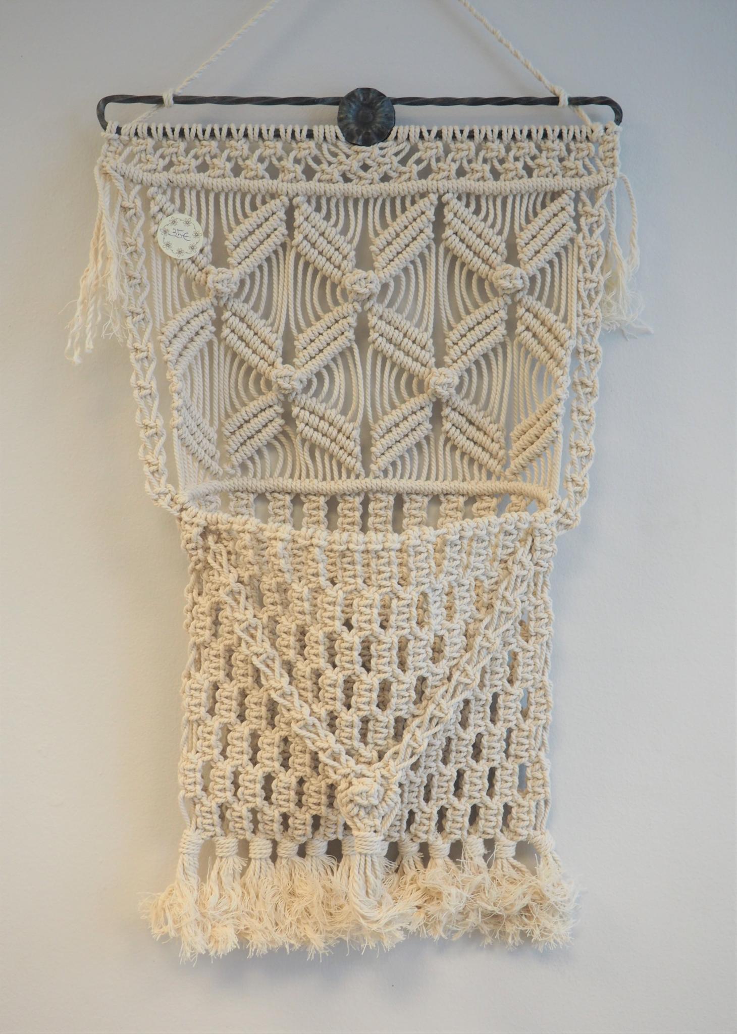 Makramee ajalehehoidik. 33x54 cm. Seisukord: kasutatud, heas korras.