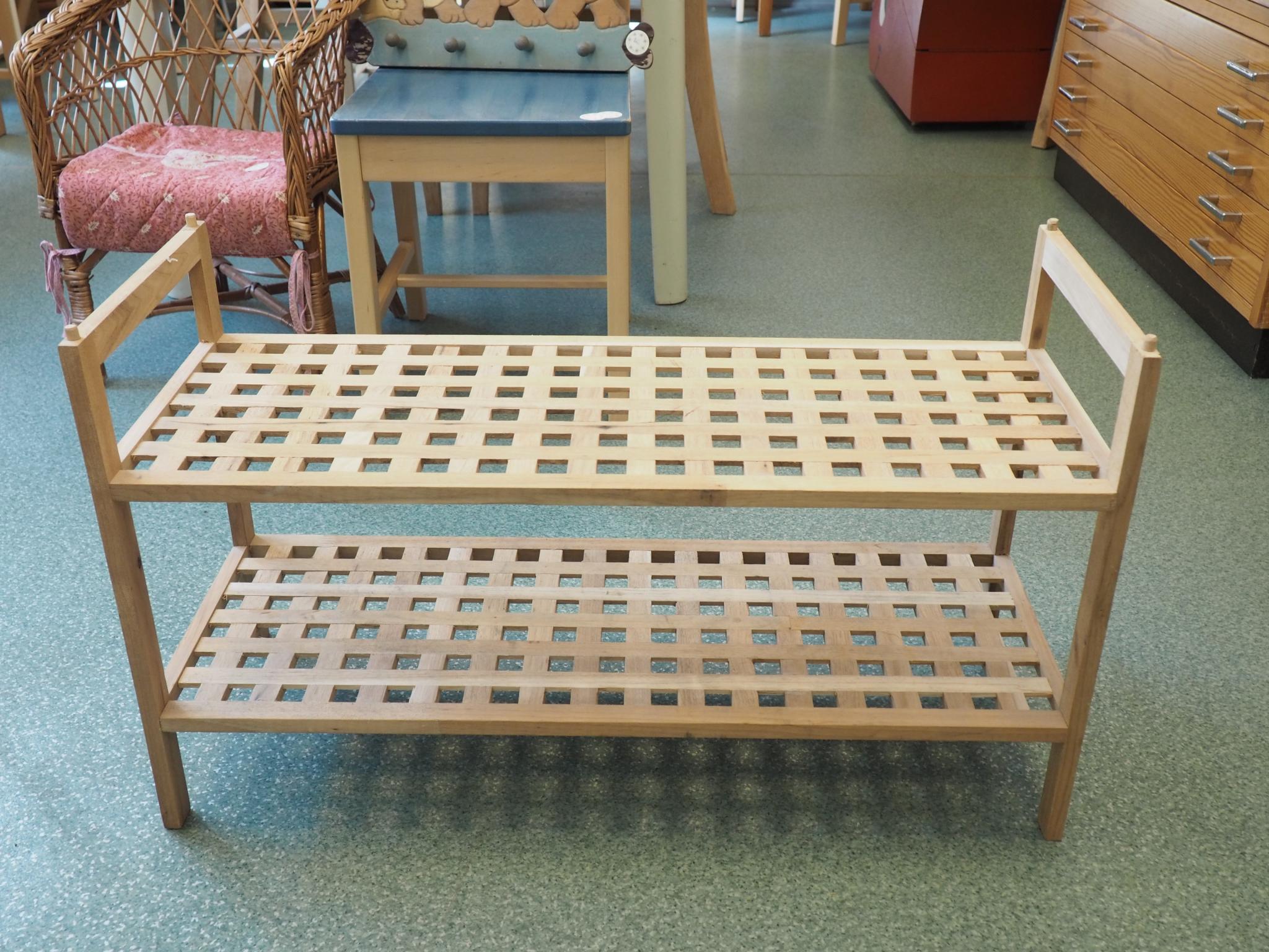 Puidust jalatsiriiul. 69x26 cm, kõrgus 40 cm. Seisukord: kasutatud, kulunud.