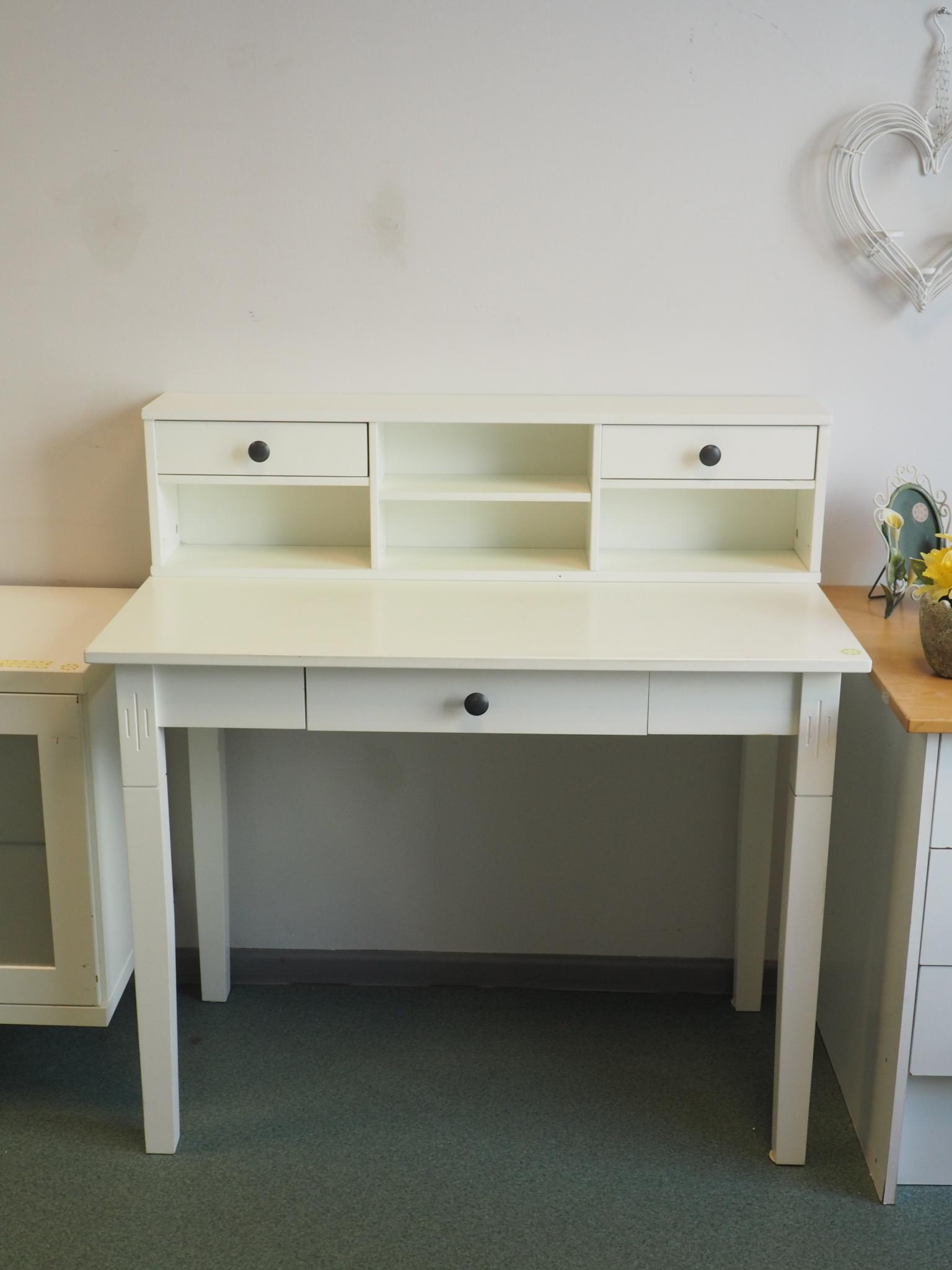 Saepuruplaadist kirjutuslaud. 100x52.5 cm, laua kõrgus 76.5 cm, kogu kõrgus 102 cm. Seisukord: kasutatud, kulunud.