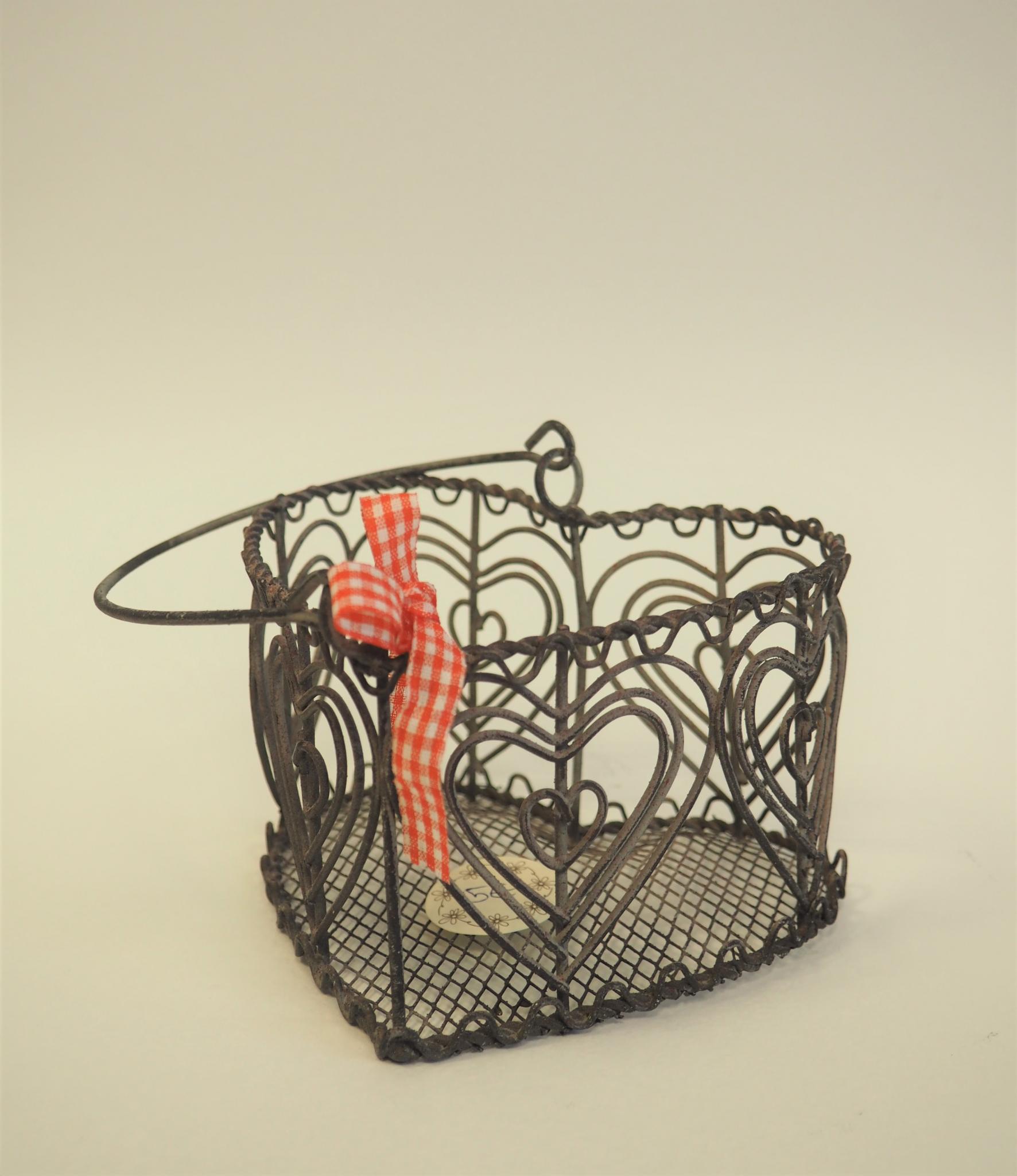 Metallist korv. 12x10 cm, kõrgus 8 cm. Seisukord: kasutatud, heas korras.