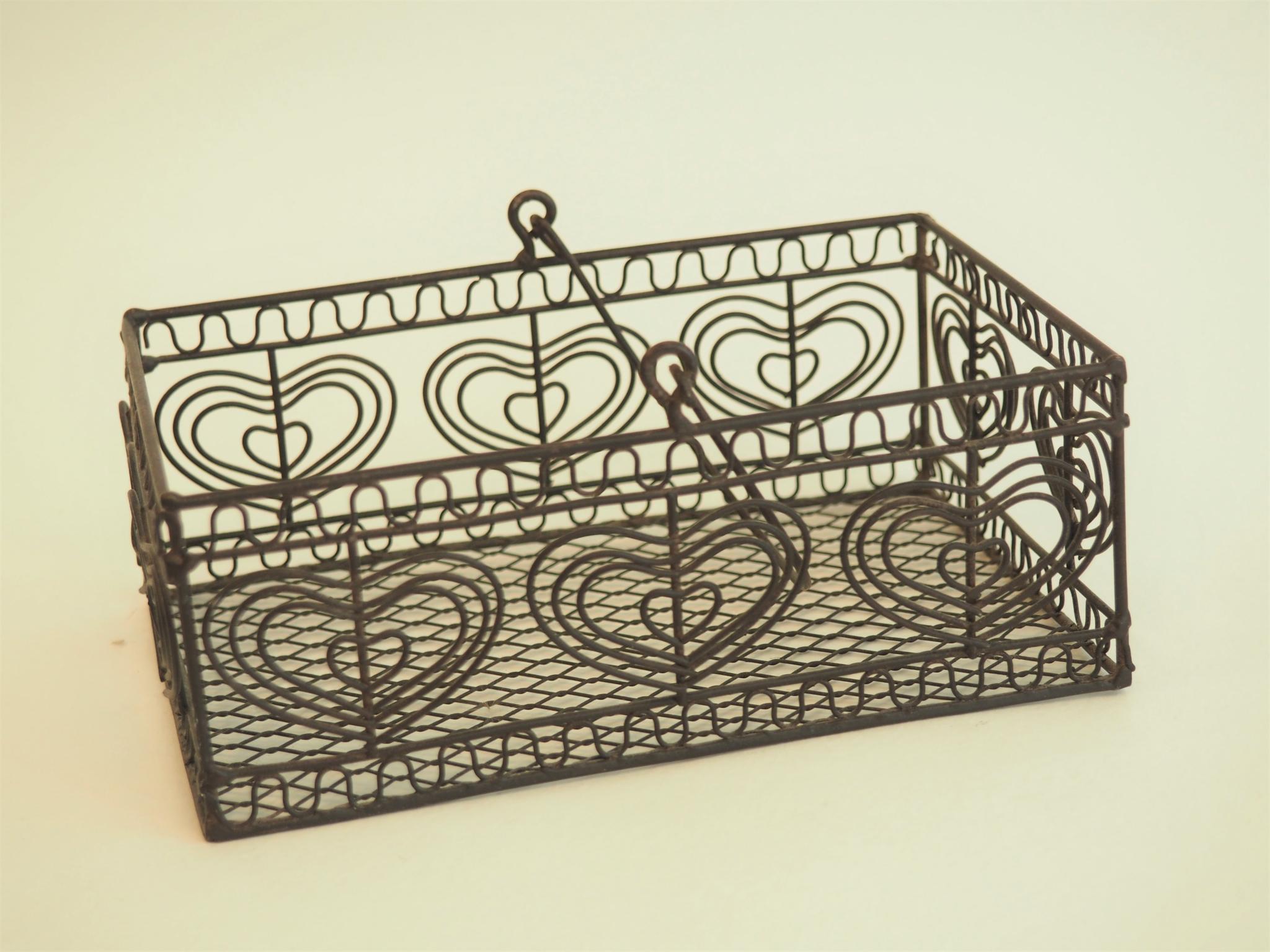 Metallist korv. 15.5x10 cm, kõrgus 7 cm. Seisukord: kasutatud, heas korras.