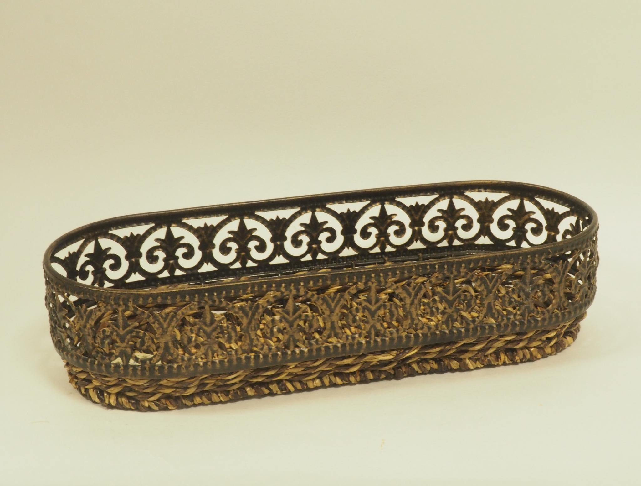 Metallist/punutud korv. 33x13 cm, kõrgus 7.5 cm. Seisukord: kasutatud, heas korras.