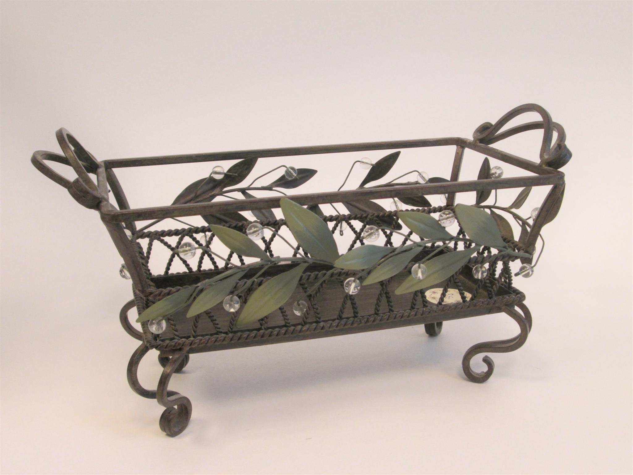 Metallist korv. 30x12.5 cm, kõrgus 16 cm. Seisukord: kasutatud, heas korras.