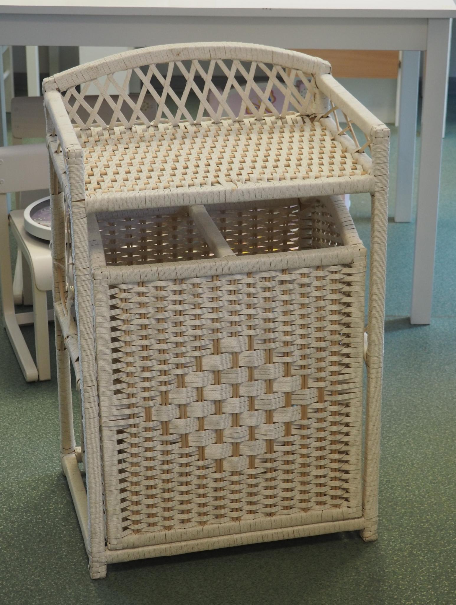 Punutud korviga riiul. 49x37 cm, kõrgus 80 cm. Seisukord: kasutatud, kulunud.