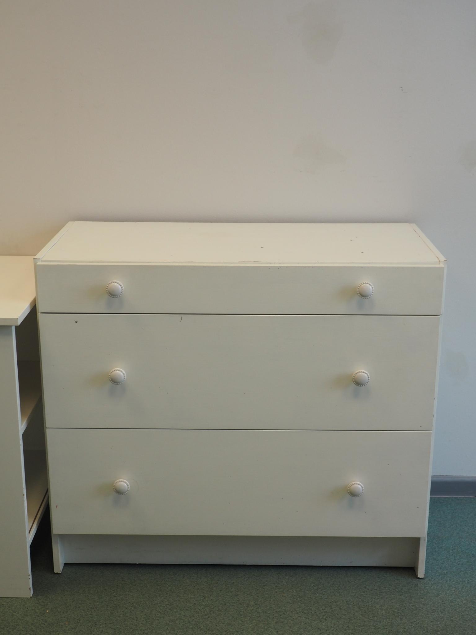 Saepuruplaadist kummut. 90.5x42 cm, kõrgus 80 cm. Seisukord: kasutatud, kulunud.