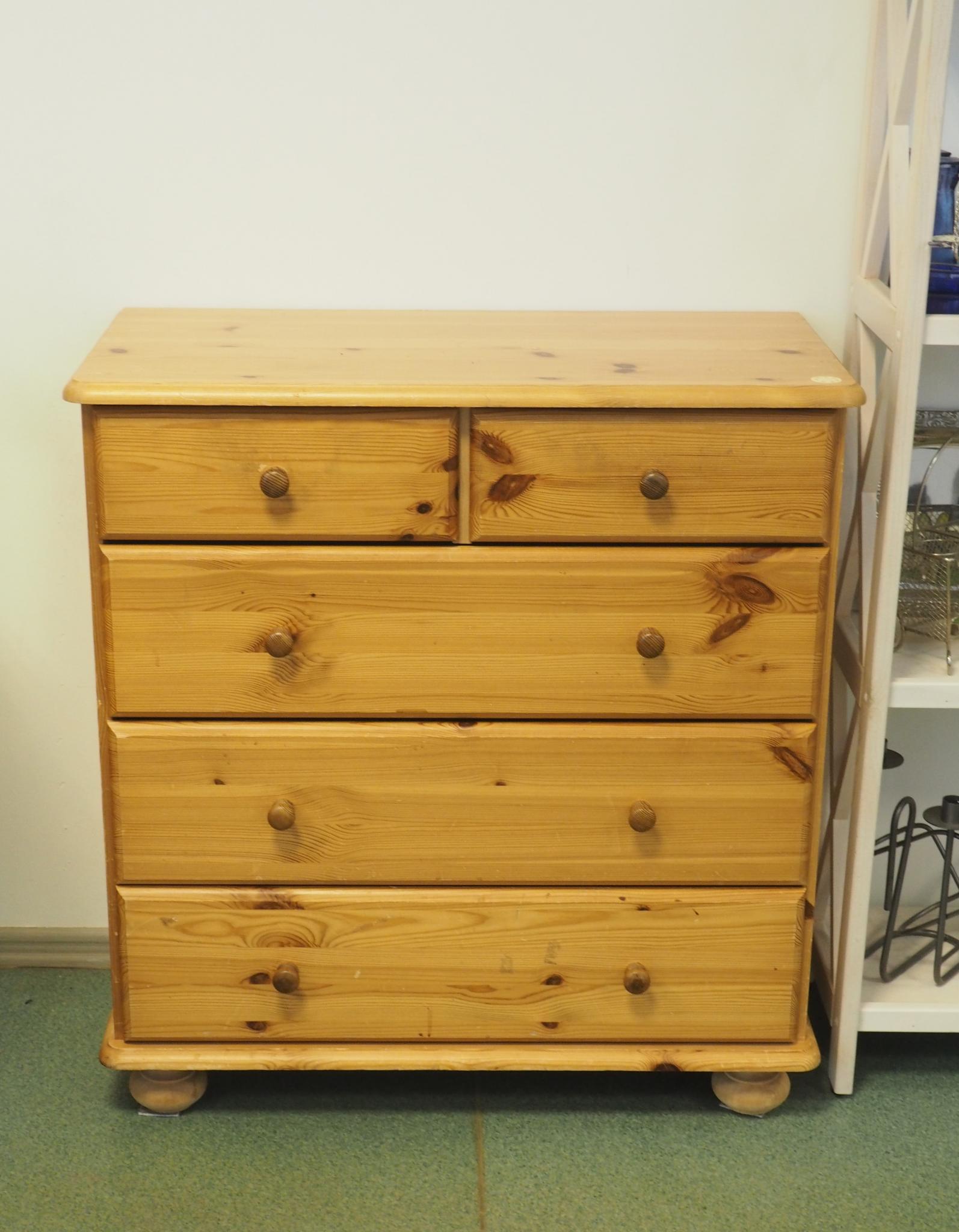 Puidust kummut. 77.5x39.5 cm, kõrgus 82.5 cm. Seisukord: kasutatud, kulunud.