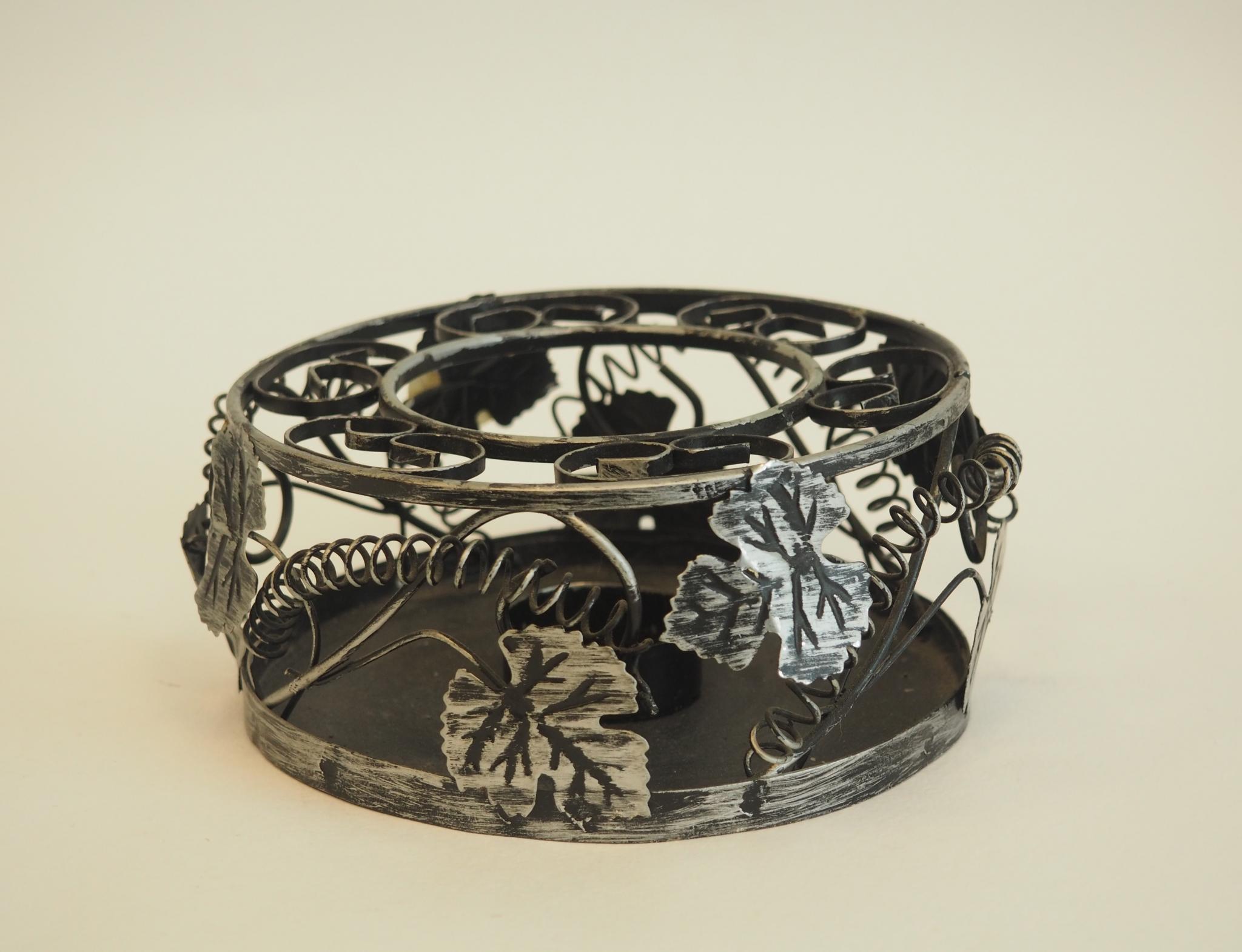 Metallist küünlaalus. Läbimõõt 14 cm, kõrgus 6.5 cm. Seisukord: kasutatud, heas korras.