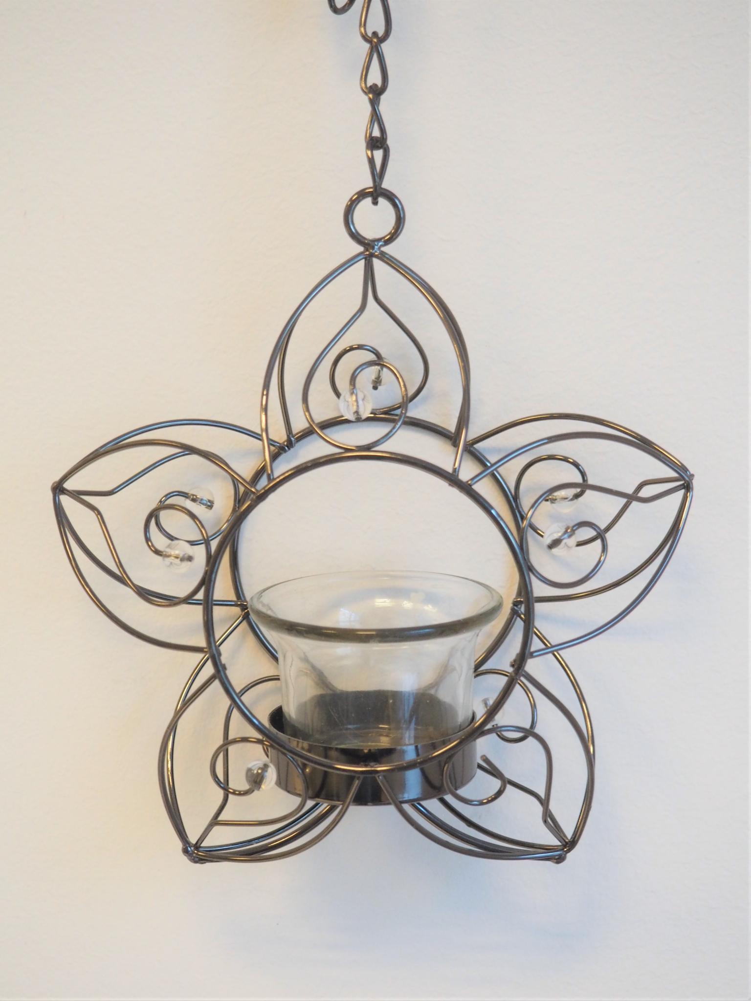 Metallist riputatav küünlaalus. Pikkus (koos ketiga) 86 cm. Seisukord: kasutatud, heas korras.