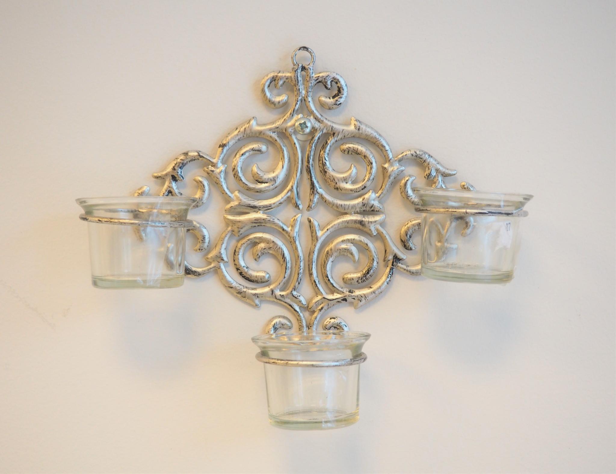 Metallist küünlaalus seinale. 23.5x20.5 cm. Seisukord: kasutatud, heas korras.
