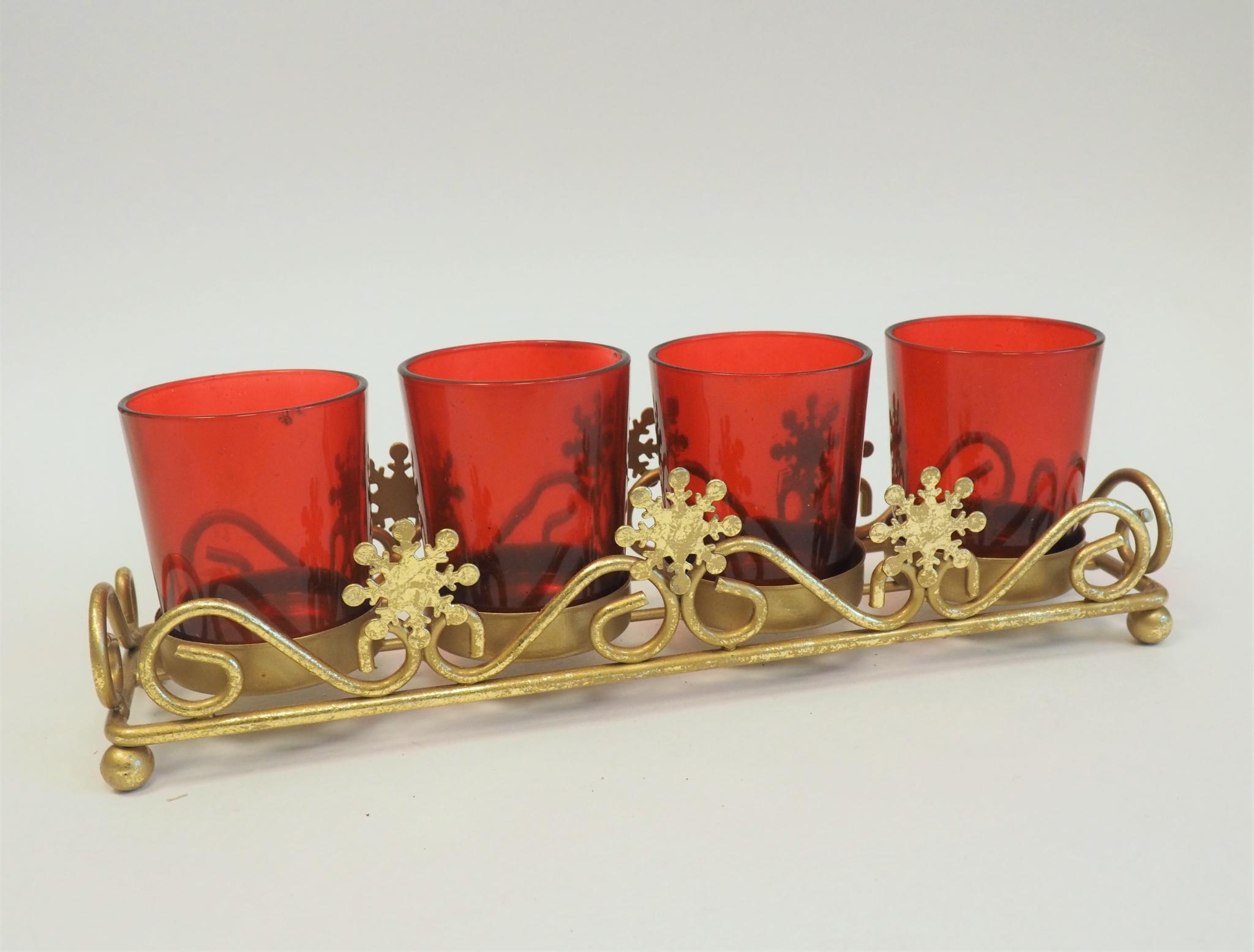 Metallist/klaasist küünlaalus. 26x7 cm, kõrgus 8 cm. Seisukord: kasutatud, heas korras.