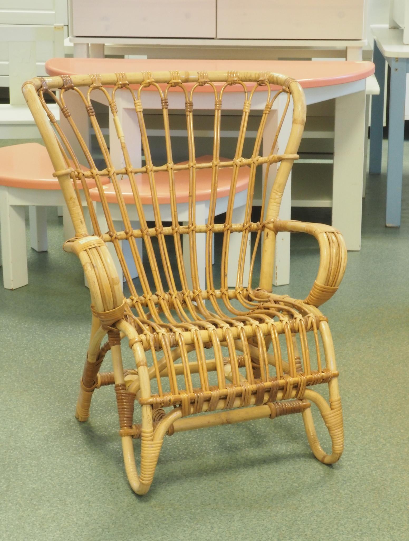 Laste rotangtool. Istme kõrgus 26 cm, seljatoe kõrgus 60 cm, laius 45.5 cm. Seisukord: kasutatud, heas korras.
