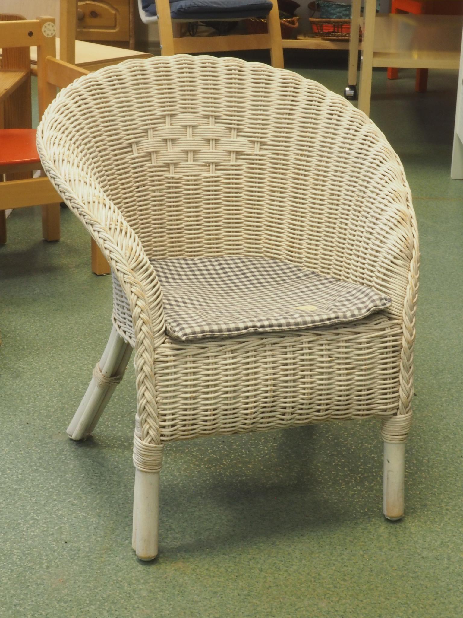 Laste rotangtool. Istme kõrgus 26 cm, seljatoe kõrgus 51 cm, laius 45 cm. Seisukord: kasutatud, heas korras.