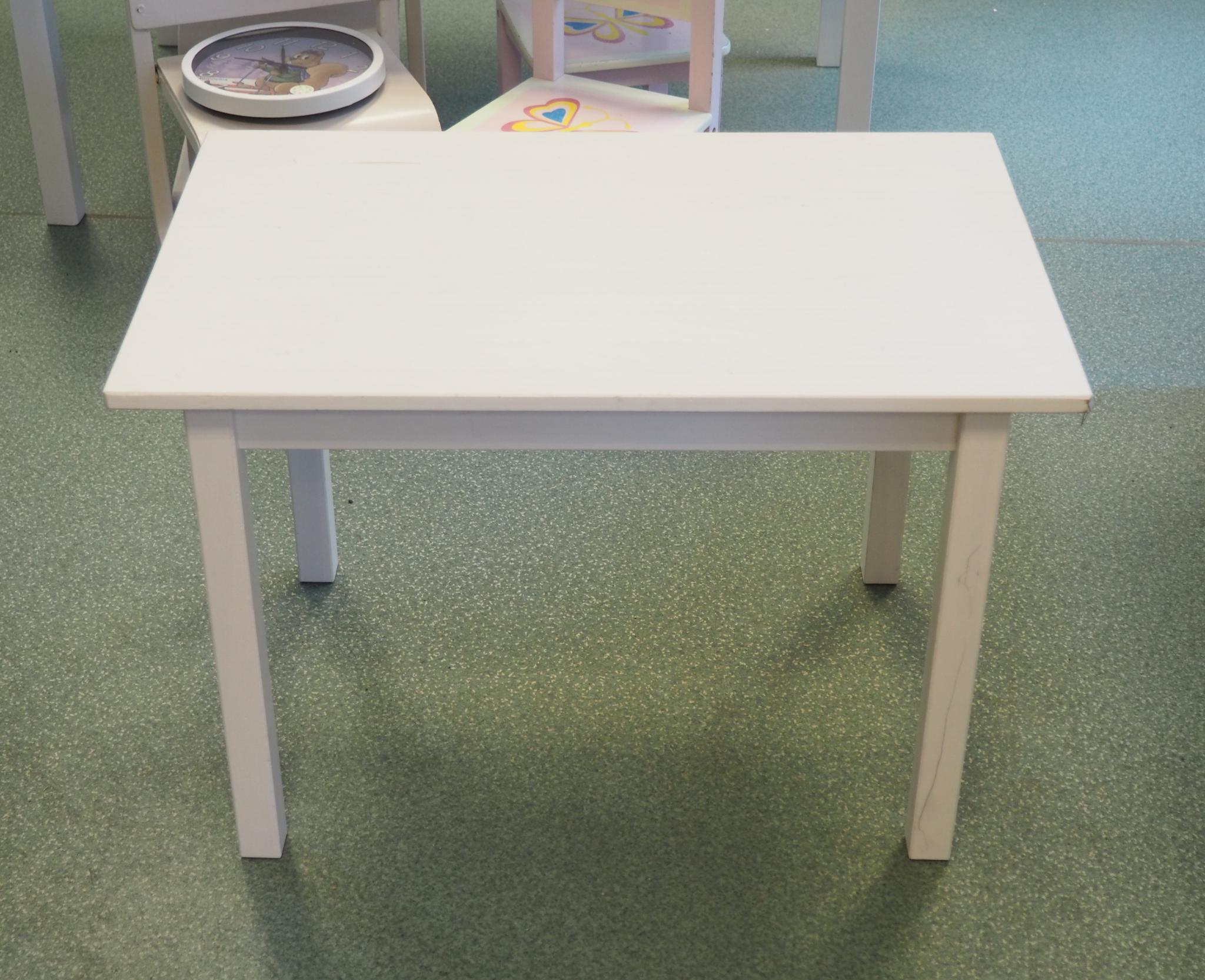 Puidust lastelaud. 50x76 cm, kõrgus 50.5 cm. Seisukord: kasutatud, kulunud.