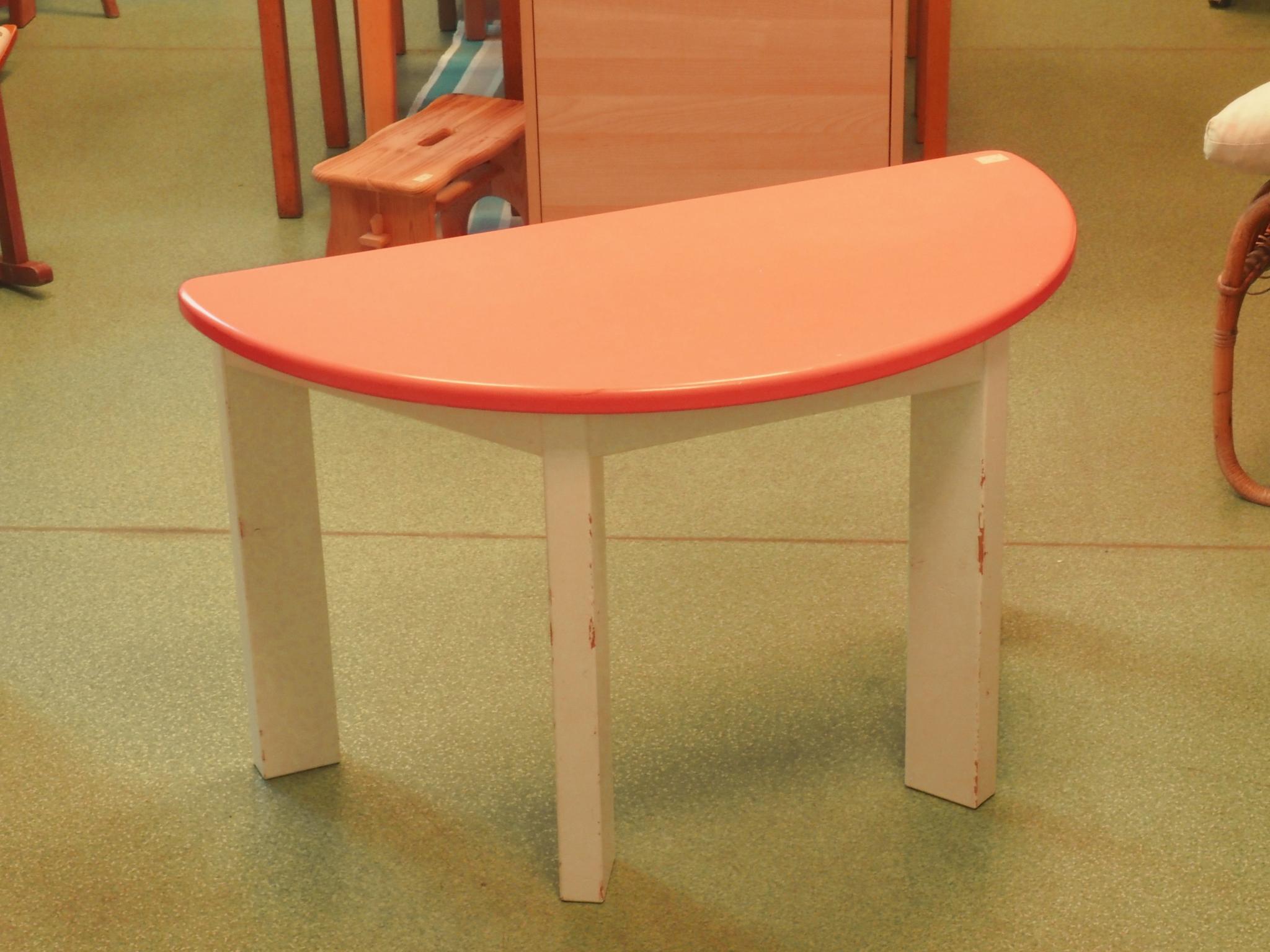 Puidust/saepuruplaadist lastelaud. 85x45 cm, kõrgus 50 cm. Seisukord: kasutatud, kulunud.