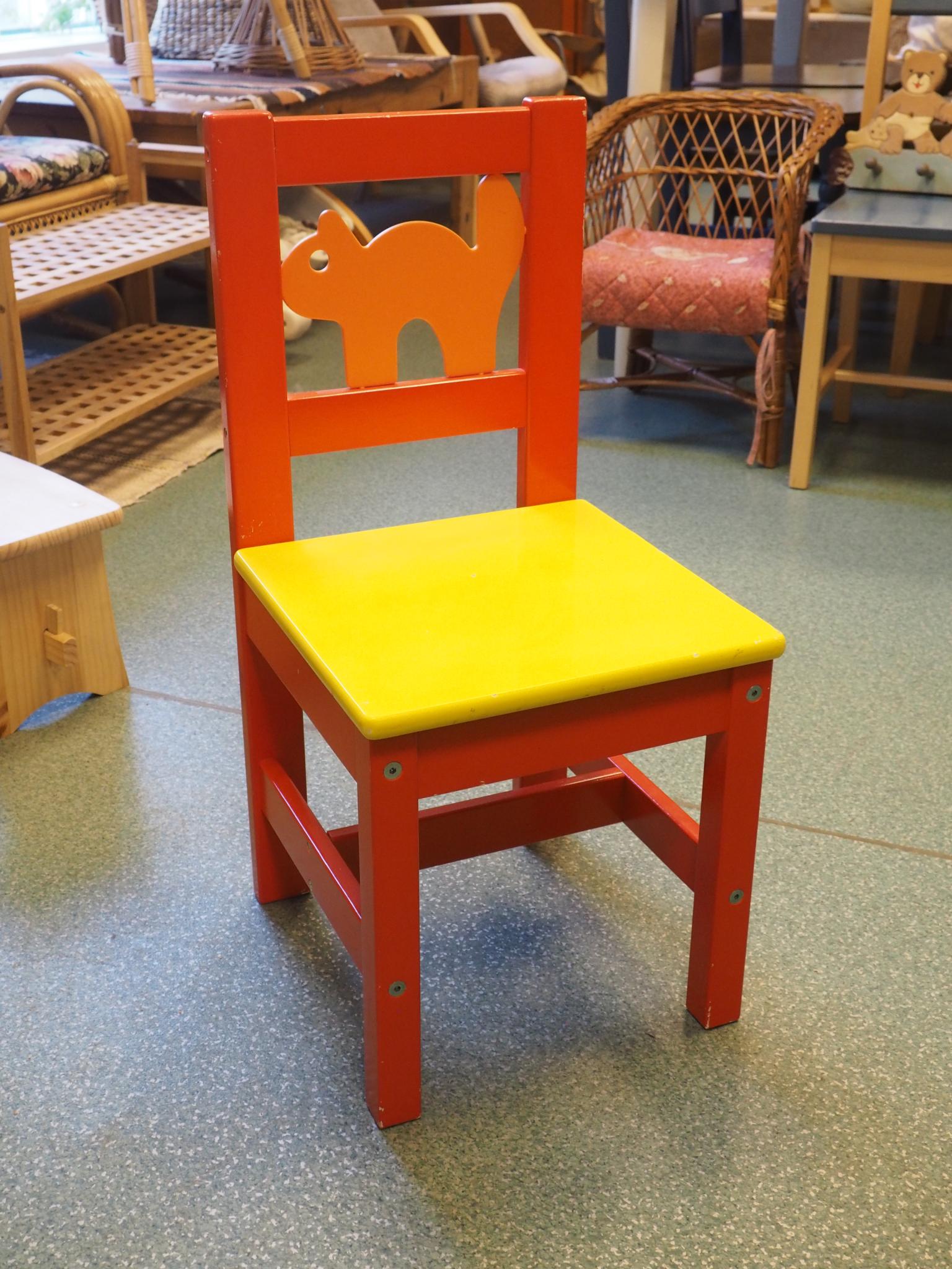 Saepuruplaadist lastetool. Istme kõrgus 32 cm, seljatoe kõrgus 62 cm, laius 29 cm. Seisukord: kasutatud, kulunud.
