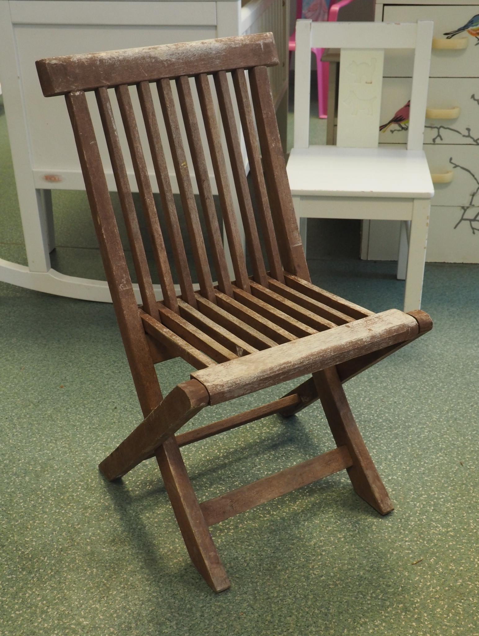 Puidust kokkupandav lastetool. Istme kõrgus 30 cm, seljatoe kõrgus 58.5 cm, laius 33 cm. Seisukord: kasutatud, kulunud.