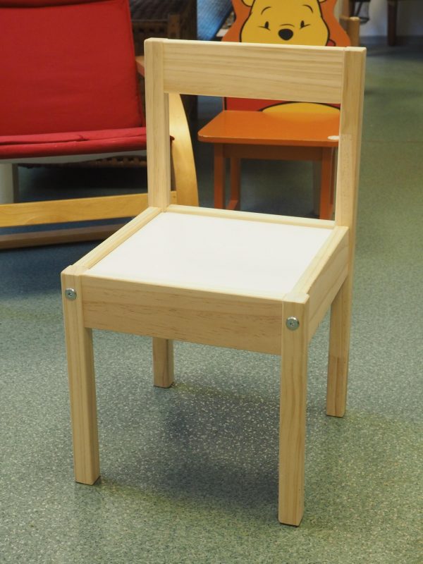Puidust lastetool soome papist põhjaga. Istme kõrgus 28 cm, seljatoe kõrgus 50 cm, laius 28 cm. Seisukord: kasutatud, heas korras.