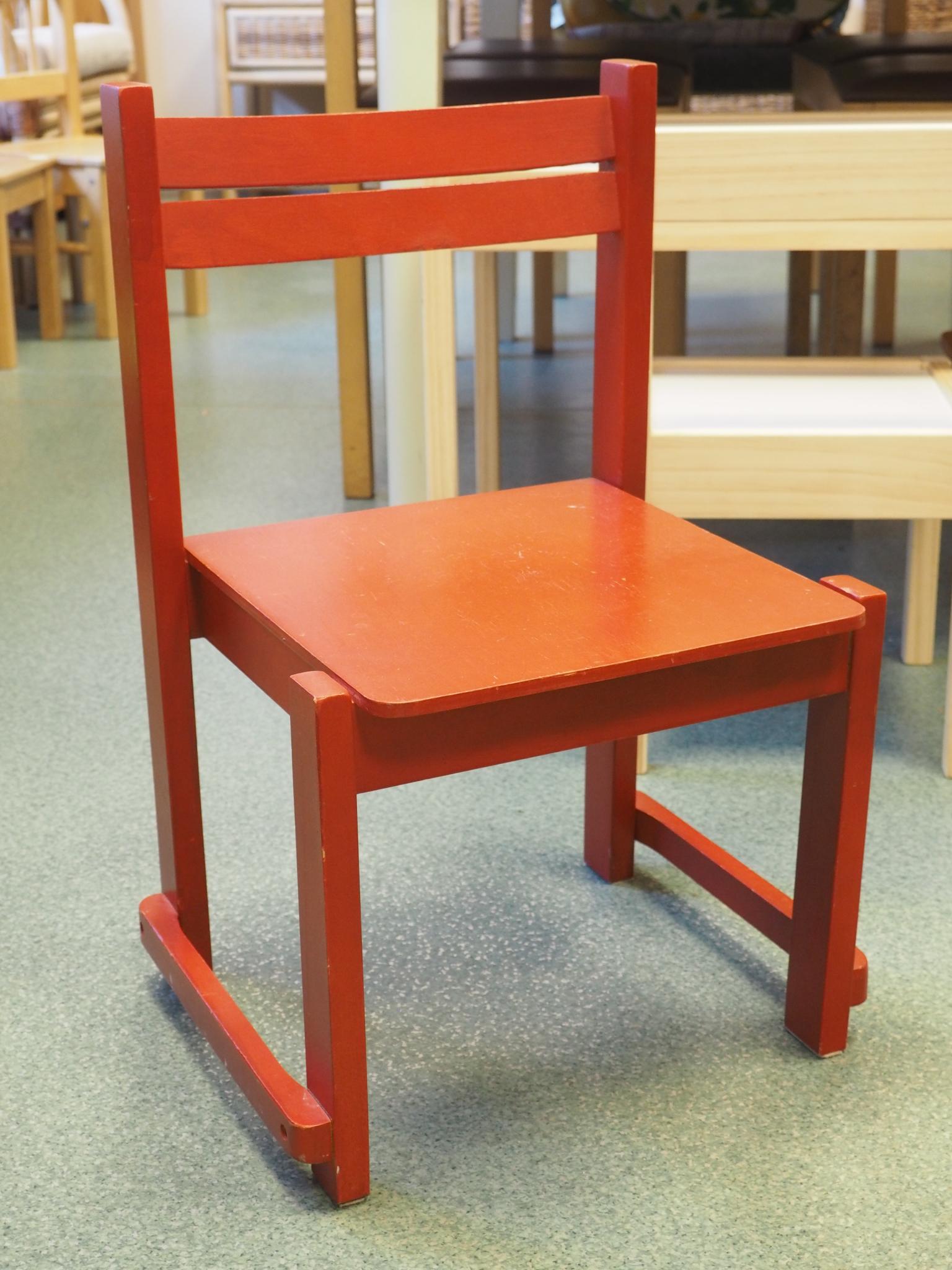Puidust lastetool. Istme kõrgus 29.5 cm, seljatoe kõrgus 57 cm, istme laius 29.5 cm. Seisukord: kasutatud, kulunud.