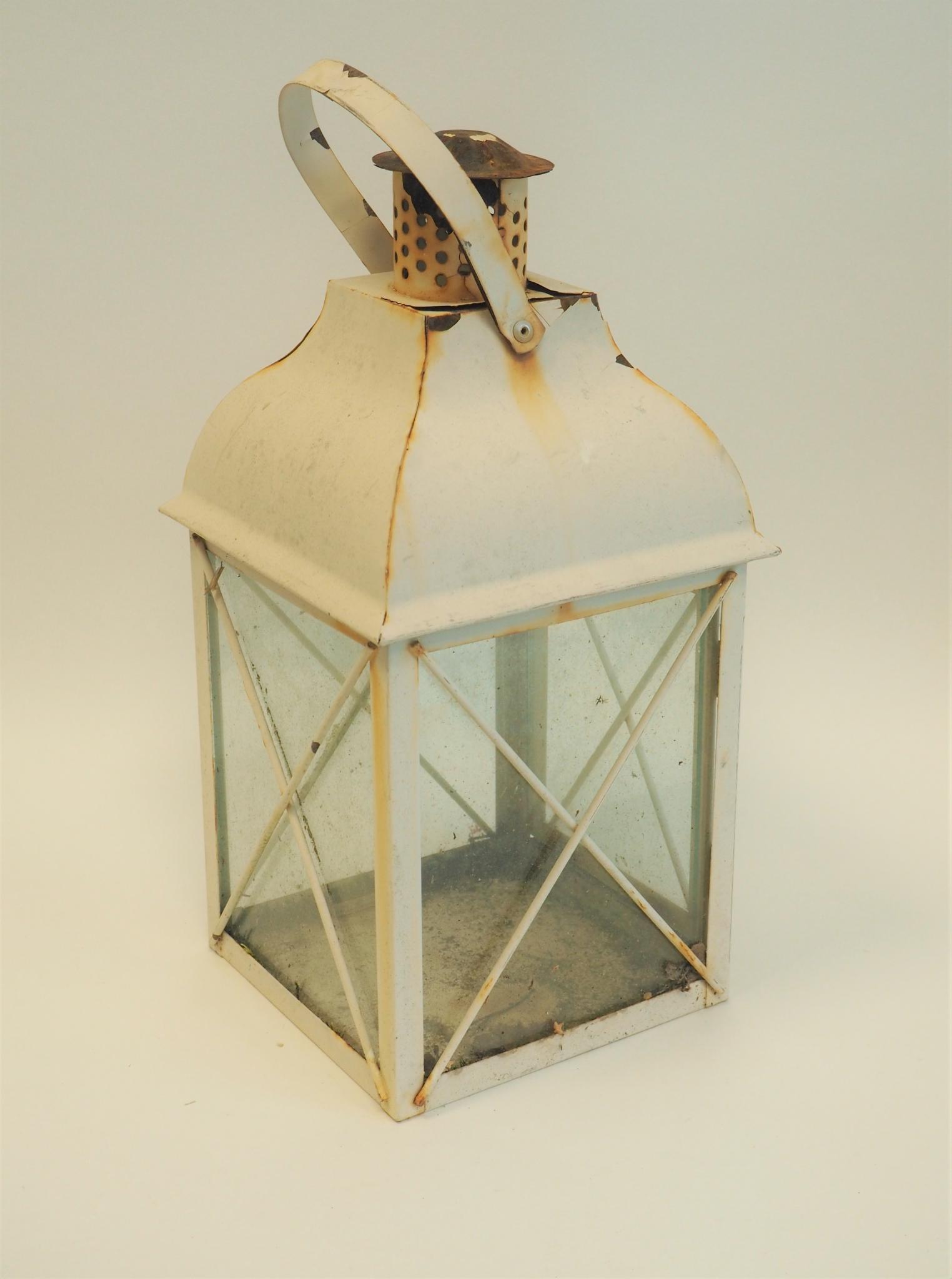 Metallist latern. 16.5x16.5 cm, kõrgus 37 cm. Seisukord: kasutatud, kulunud.