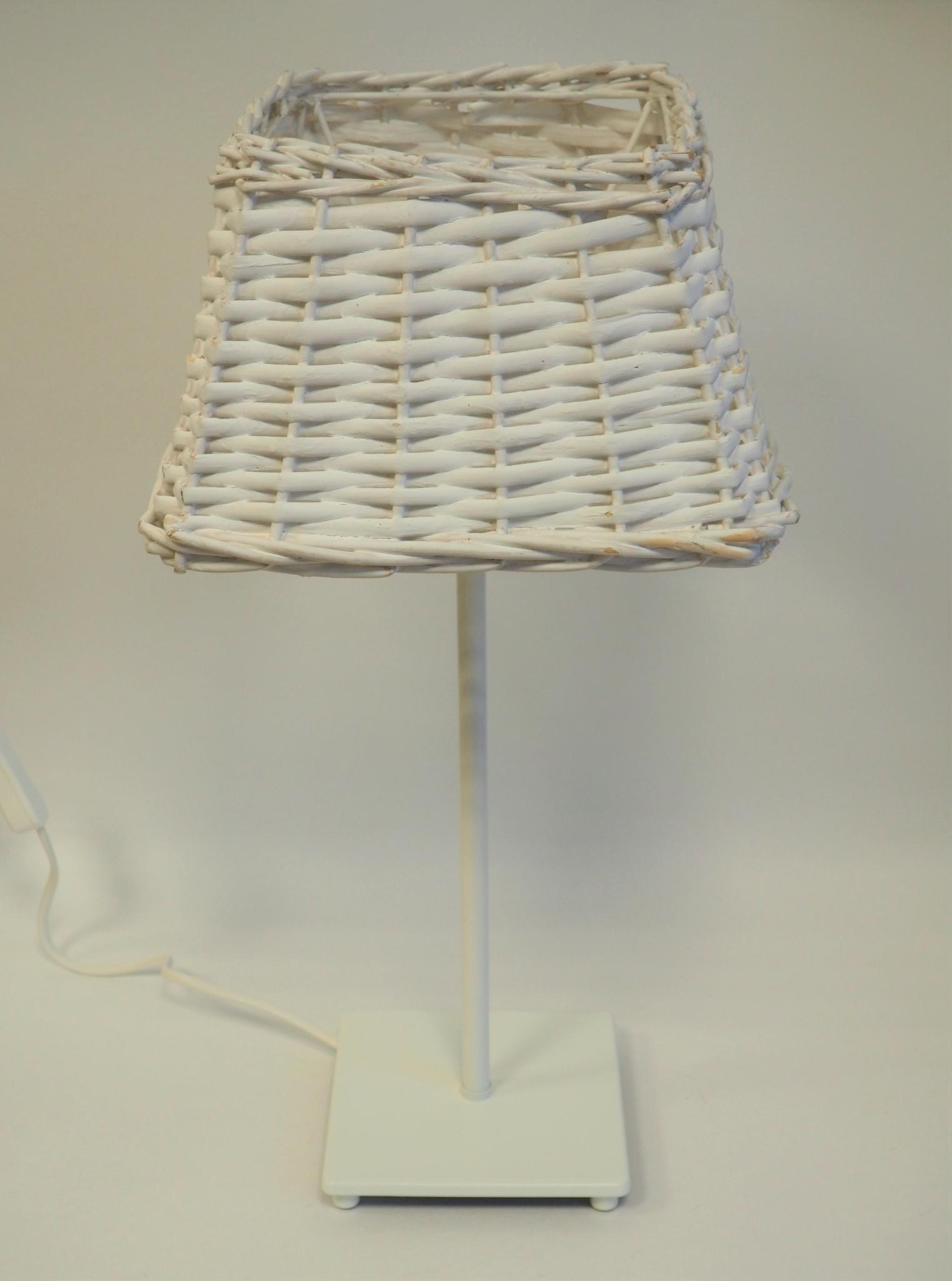 Metallist jalal rotangist kupliga laualamp. Kõrgus 47 cm, kuppel 24x24 cm. Seisukord: kasutatud, heas korras.