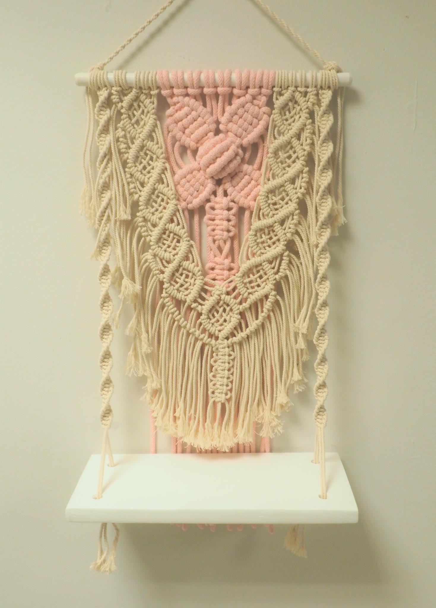 Väike makramee seinariiul. 52x30x12 cm. Seisukord: kasutatud, heas korras.