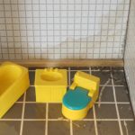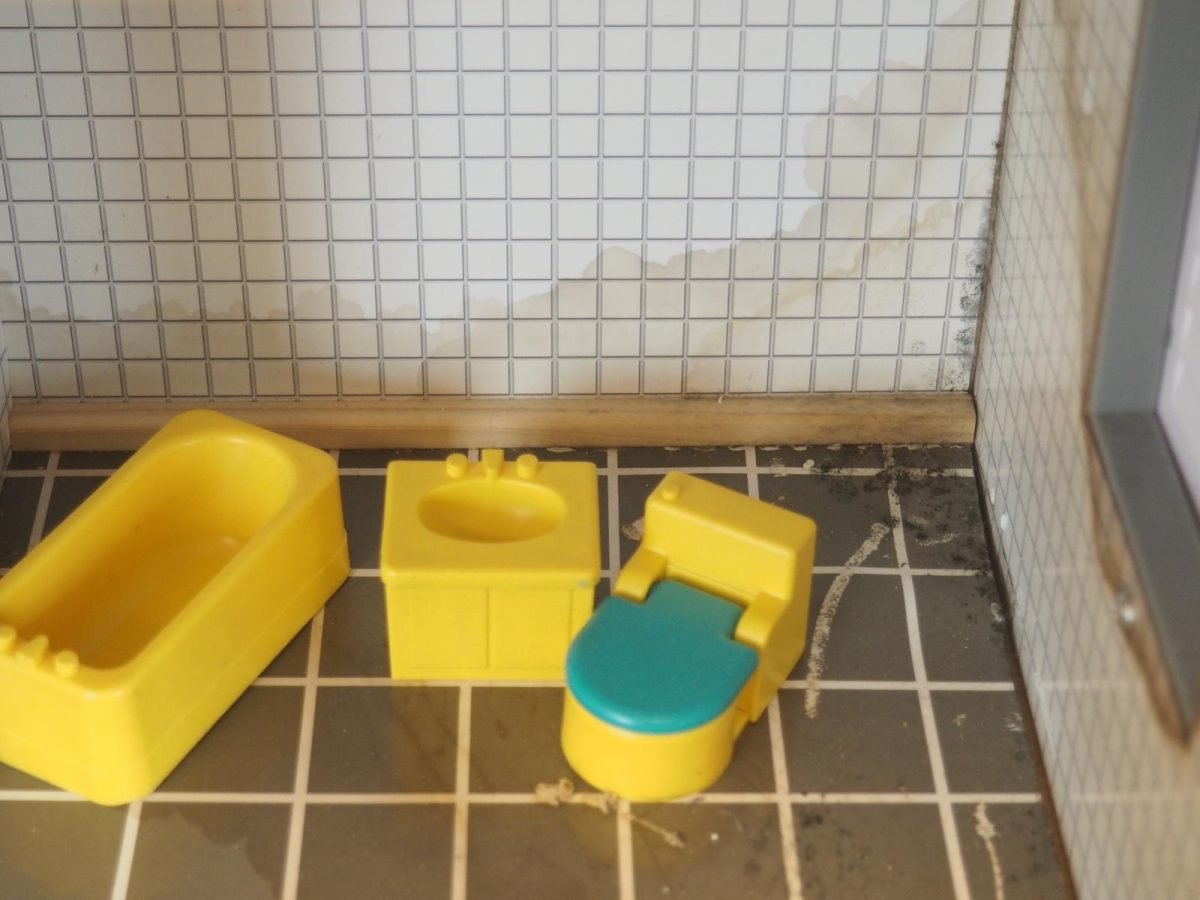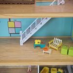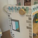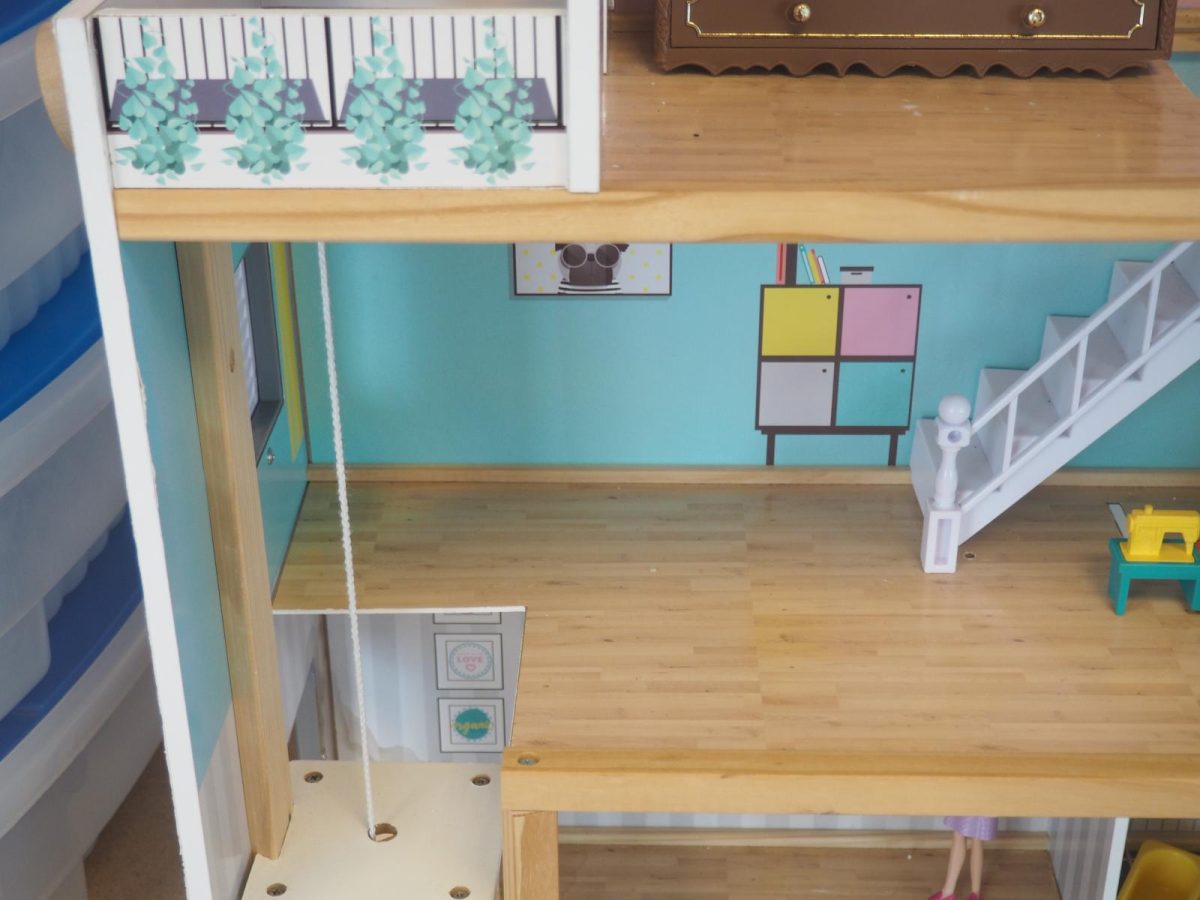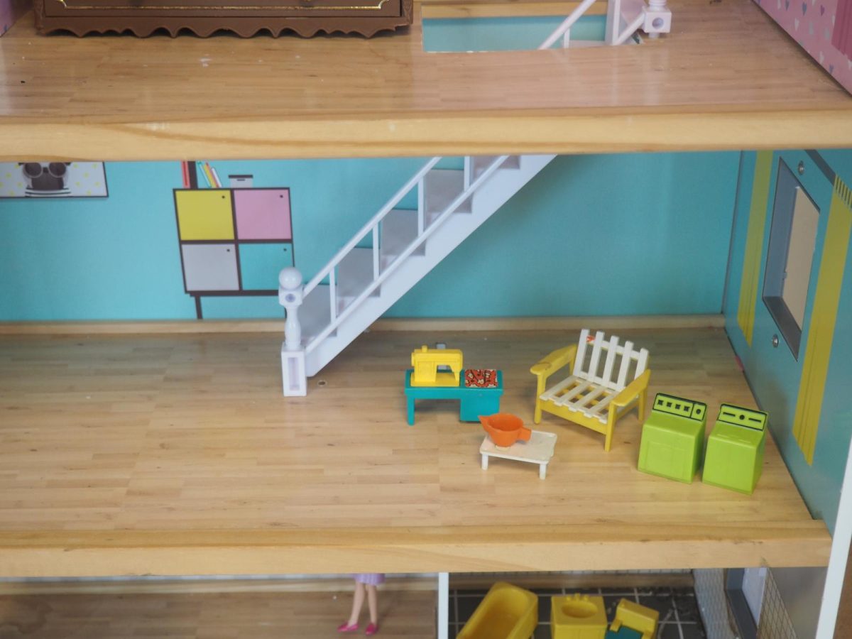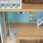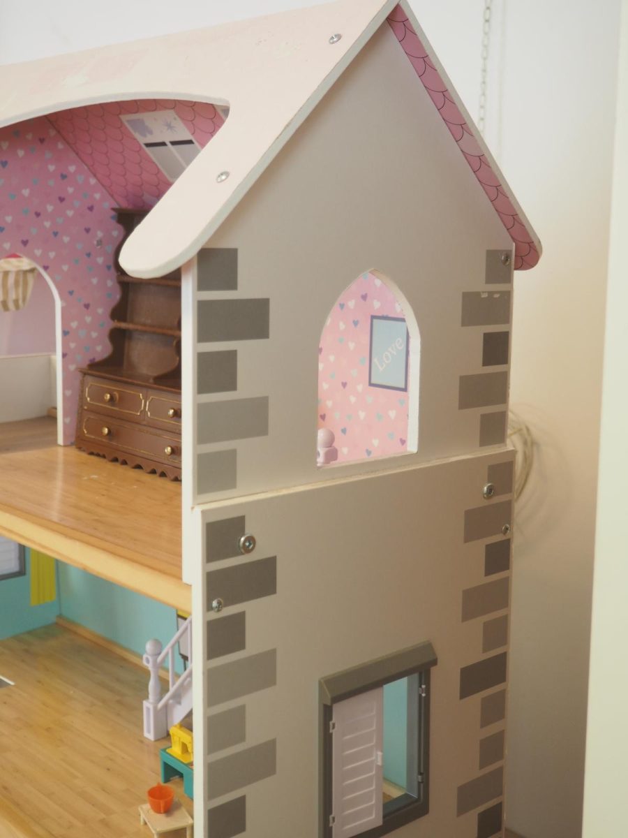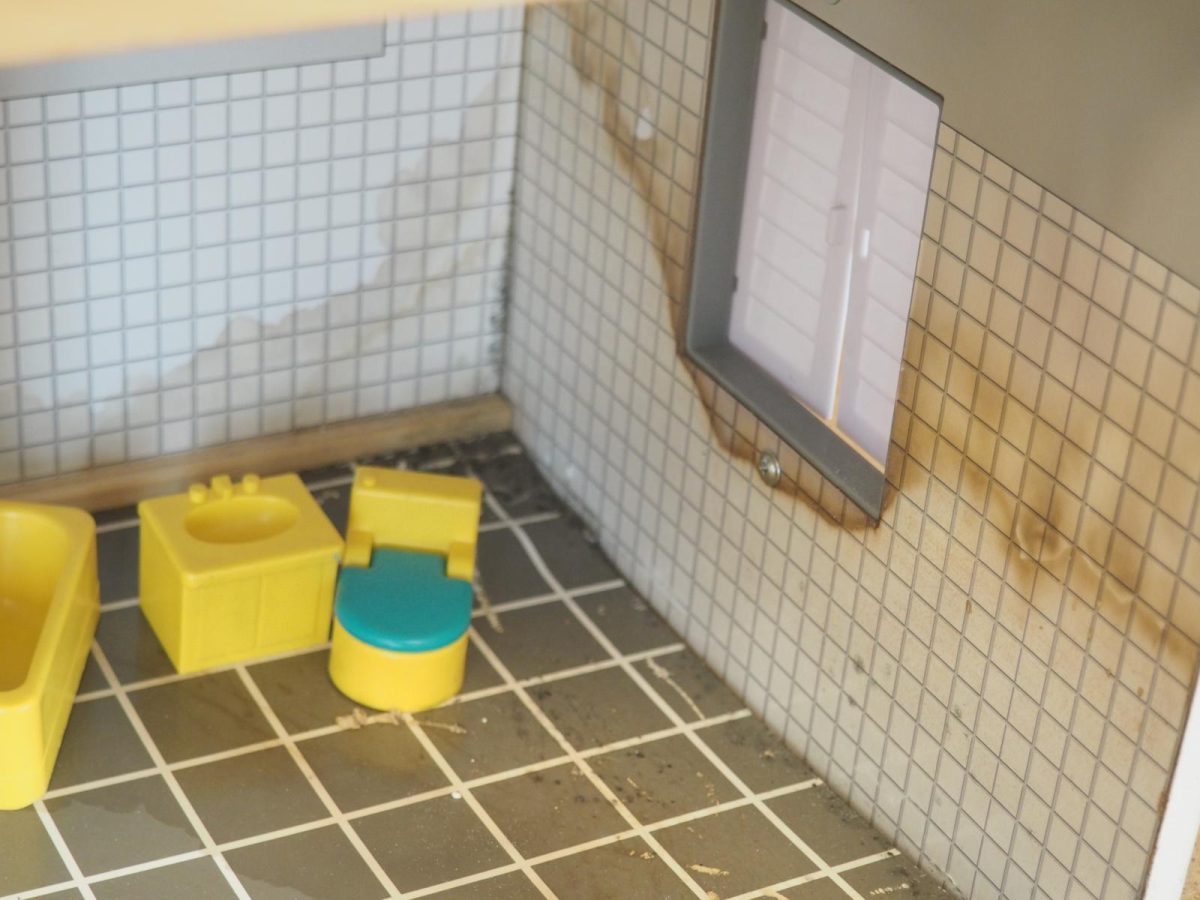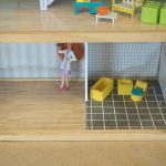 Saepuruplaadist/puidust nukumaja. 61x26 cm, kõrgus 80 cm. Seisukord: kasutatud, kulunud.