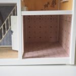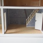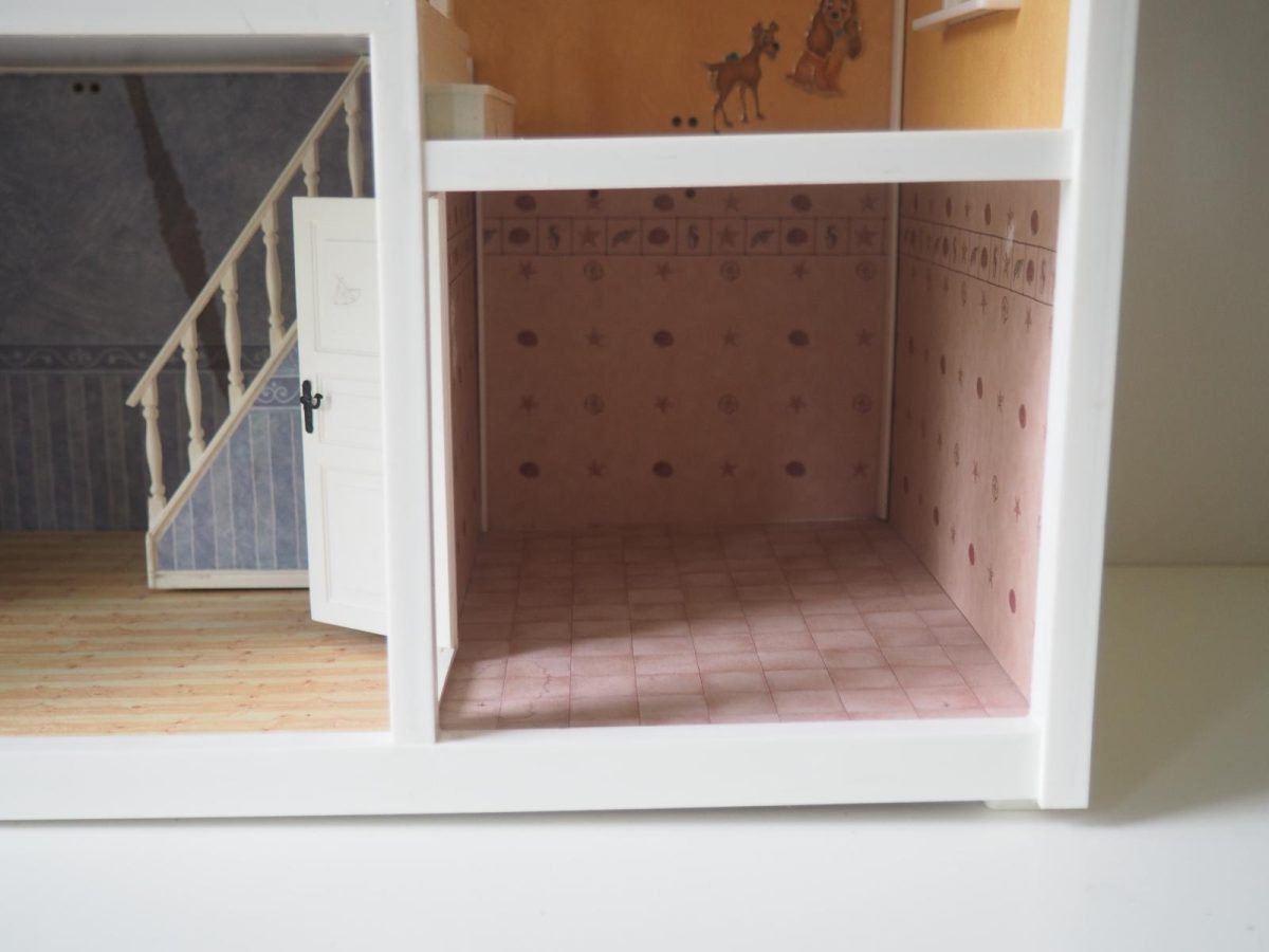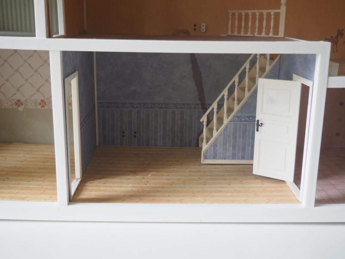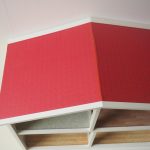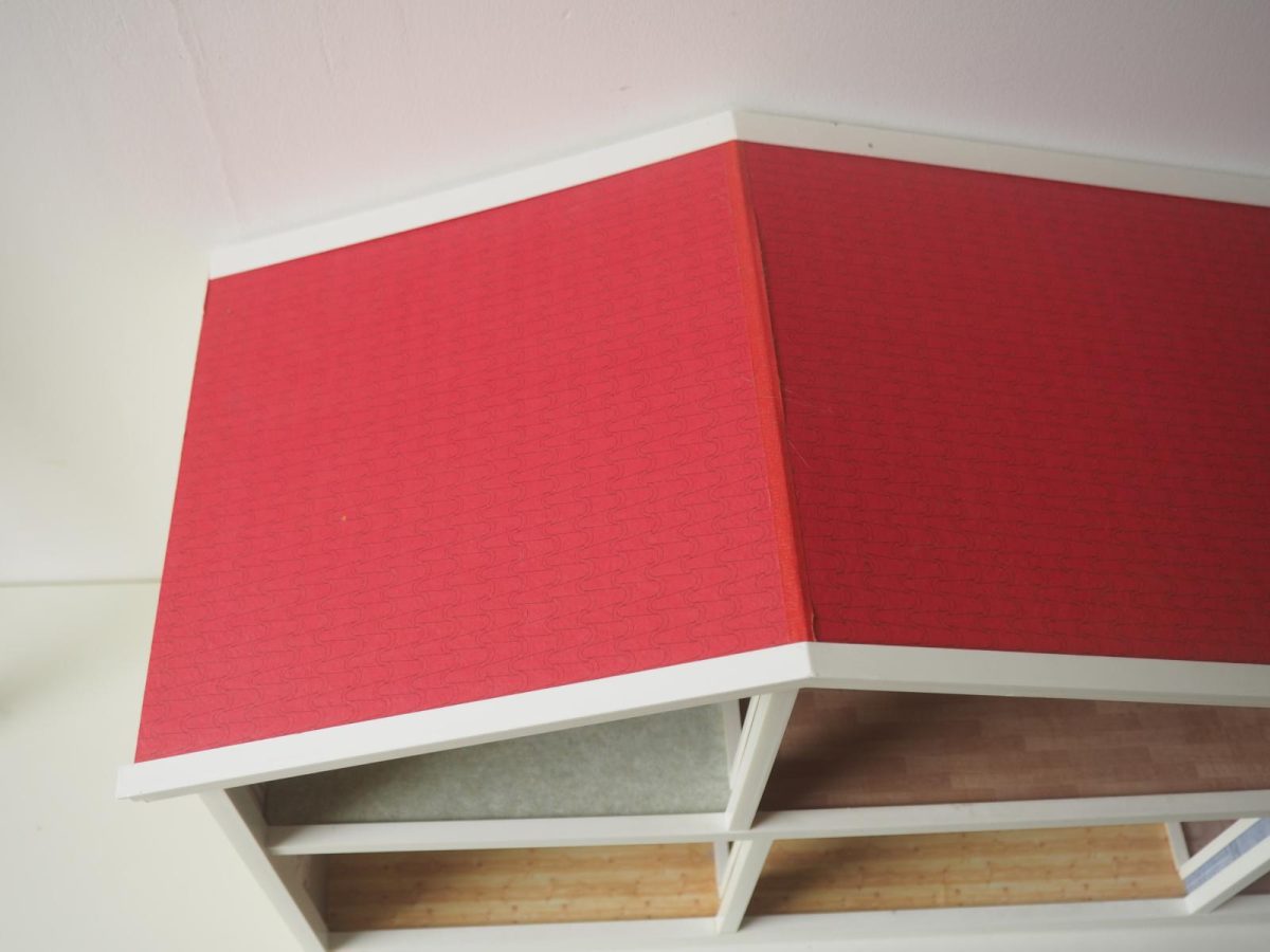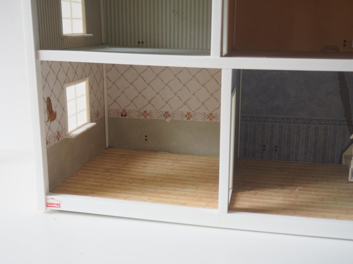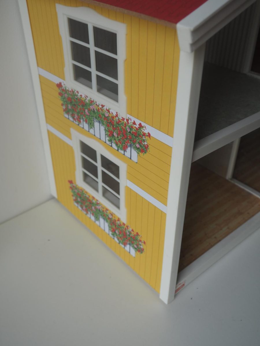 Saepuruplaadist/plastikust nukumaja. 70x26 cm, kõrgus 39 cm. Seisukord: kasutatud, kulunud.