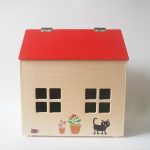 Puidust/saepuruplaadist nukumaja. 25x15 cm, kõrgus 26 cm. Seisukord: kasutatud, kulunud.