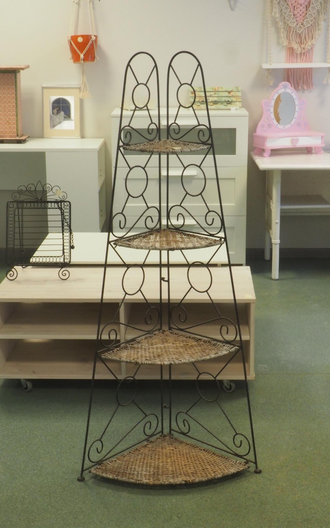 Metallist/rotangist nurgariiul. Kõrgus 135 cm, külje pikkused 42/32/27/21 cm. Seisukord: kasutatud, kulunud.