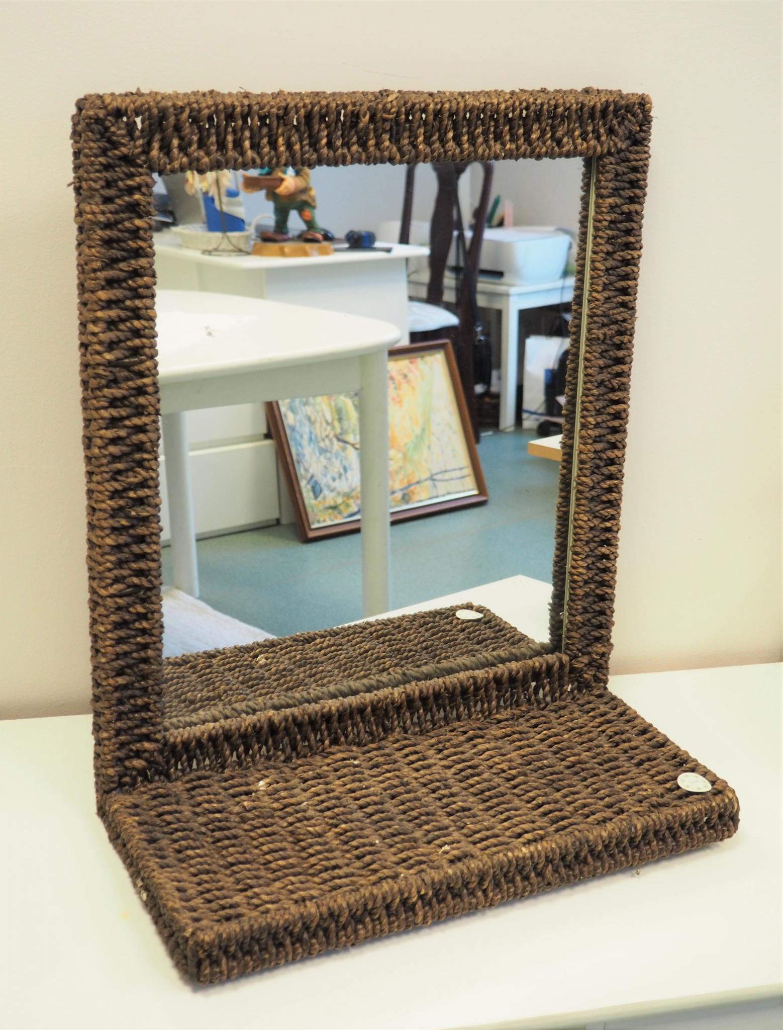 Rotangist peegel. 50x25 cm, kõrgus 60 cm. Seisukord: kasutatud, heas korras.
