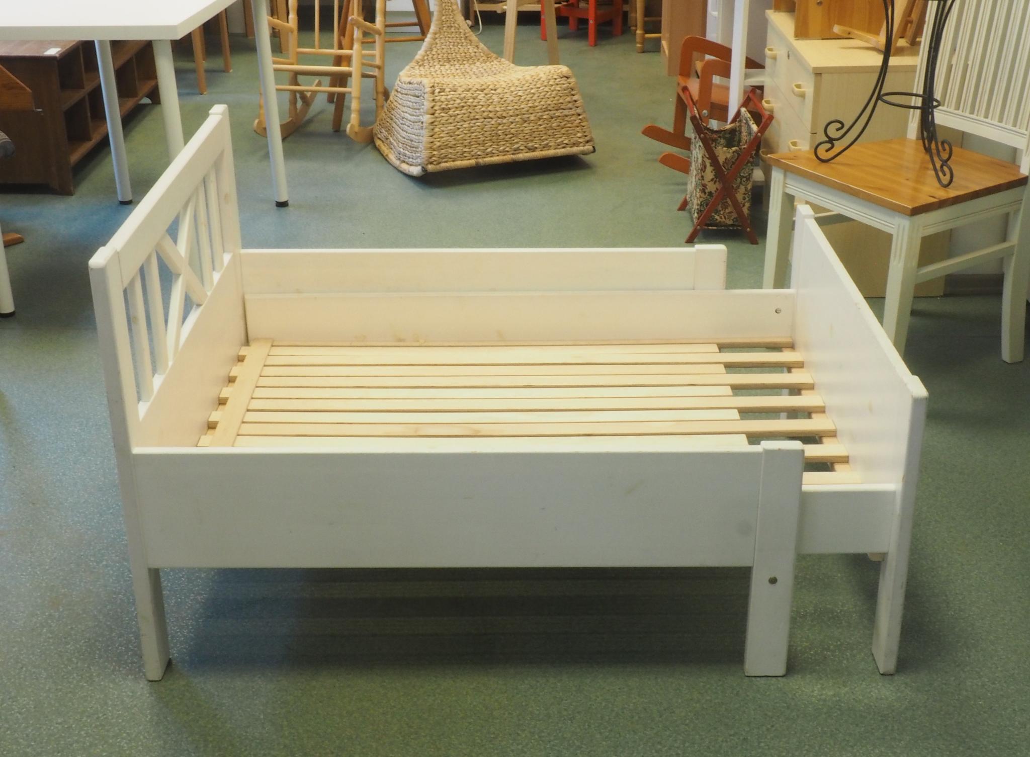 Puidust pikendatav lastevoodi. Välimised mõõdud kinniselt 115x84 cm, lahtiselt 204x84 cm. Sisemised mõõdud kinniselt 111x76 , lahtiselt 200x76 cm. Seisukord: kasutatud, kulunud.