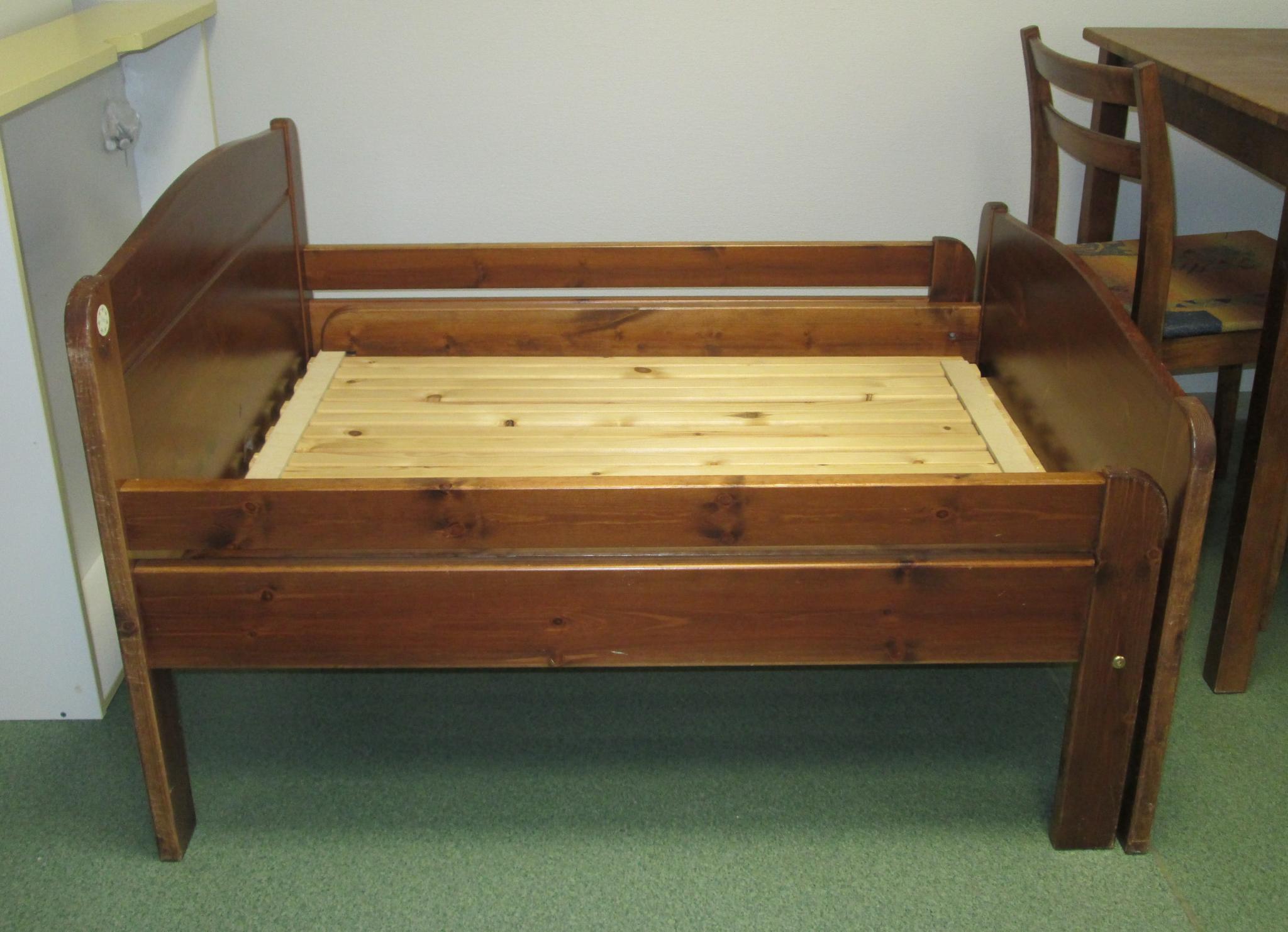 Puidust pikendatav lastevoodi. Välimised mõõdud kinniselt 87x106 cm, lahti tõmmatuna 87x202 cm. Sisemised mõõdud kinniselt 75x102 cm, lahti tõmmatuna 75x196 cm. Seisukord: kasutatud, heas korras.