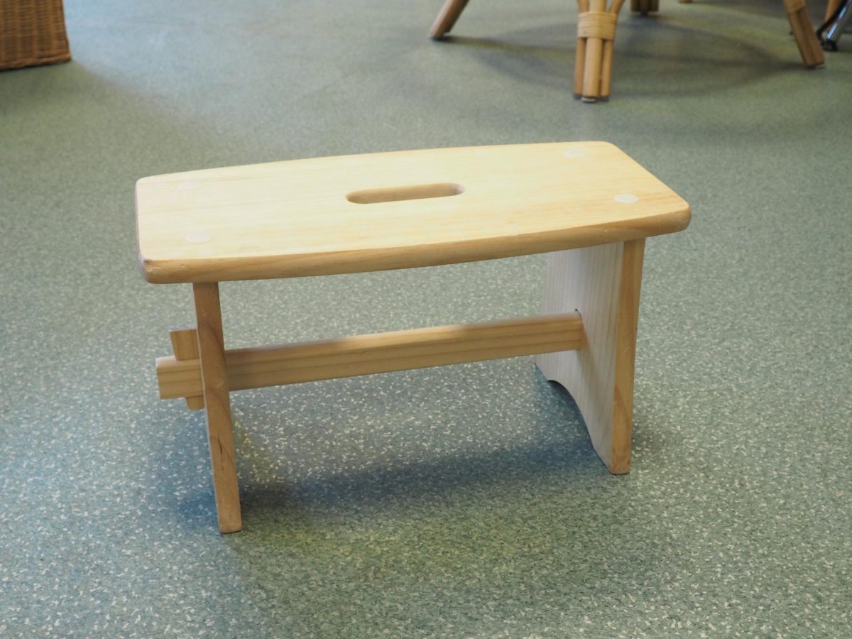 Puidust pingike. 38x19 cm, kõrgus 21 cm. Seisukord: kasutatud, kulunud.