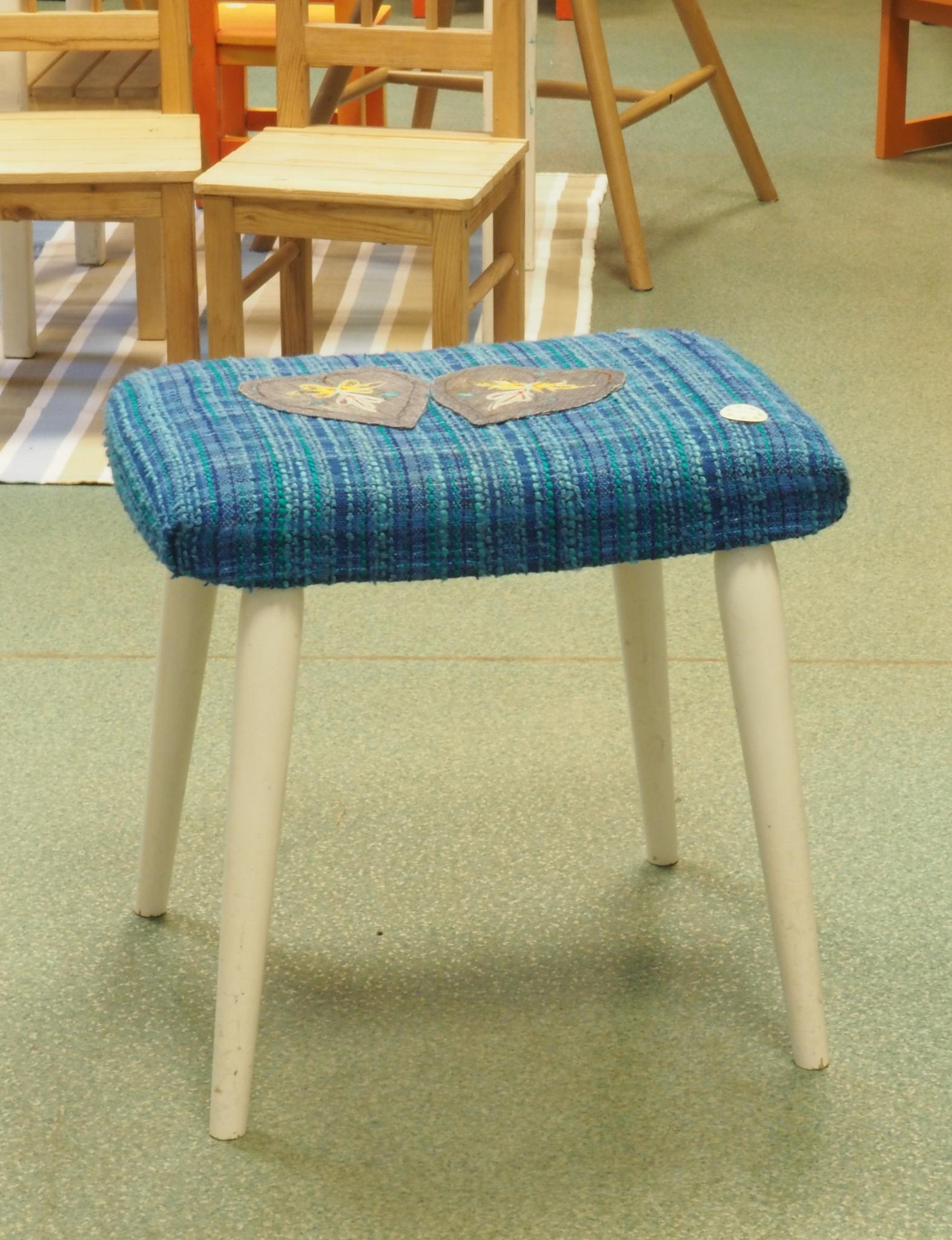 Puidust jalgadel tekstiilist kattega pink. 43x31 cm, kõrgus 41 cm. Seisukord: kasutatud, kulunud.
