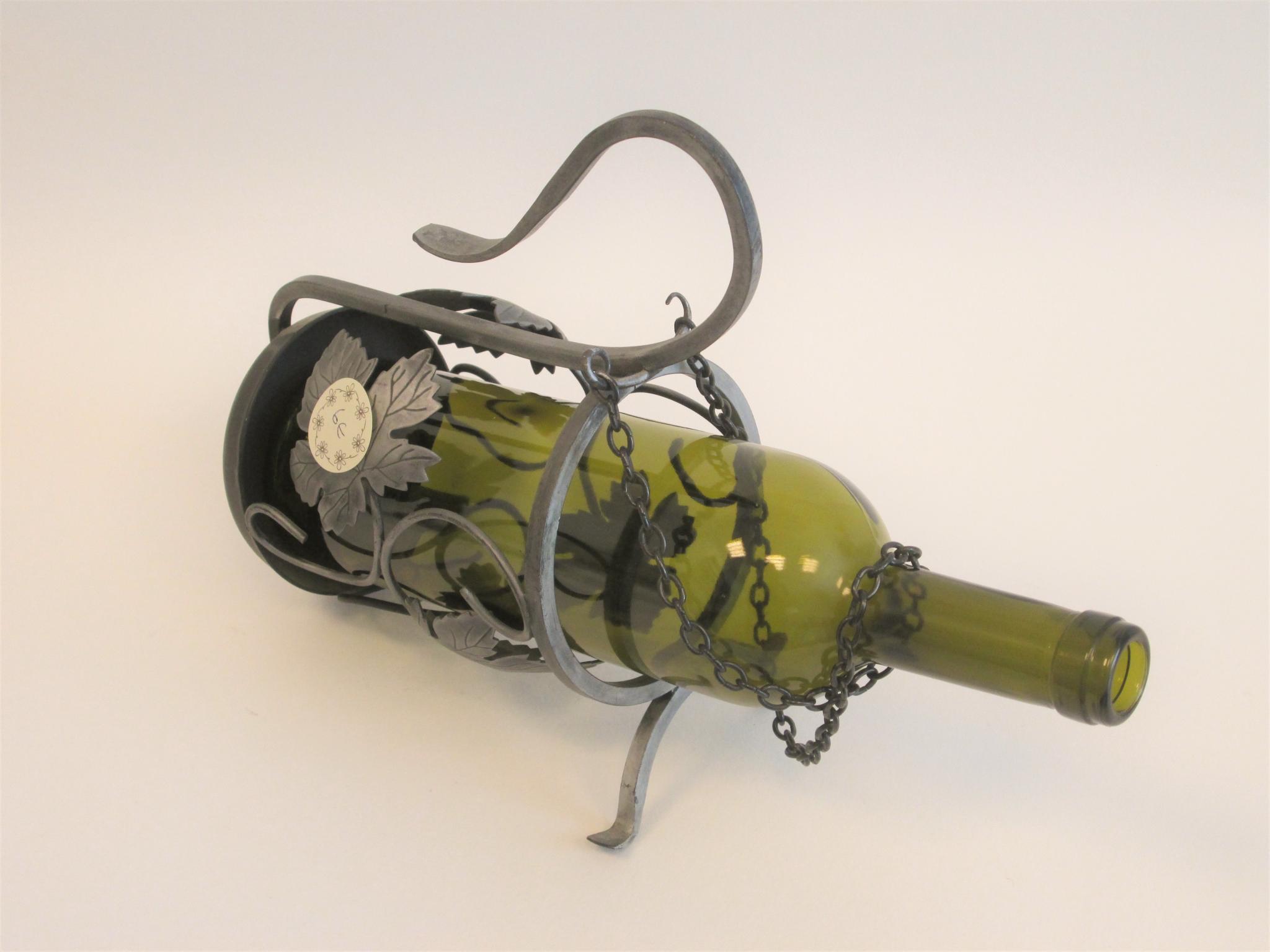 Metallist pudelihoidik. 16x10.5 cm, kõrgus 23 cm. Seisukord: kasutatud, heas korras.