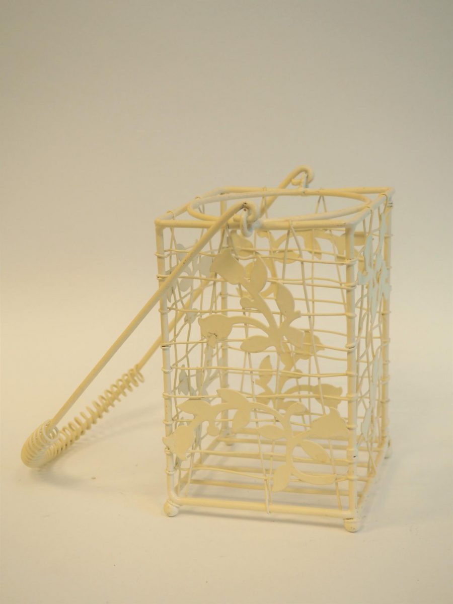 Metallist pudelikorv. 10x10 cm, kõrgus 16 cm. Seisukord: kasutatud, heas korras.