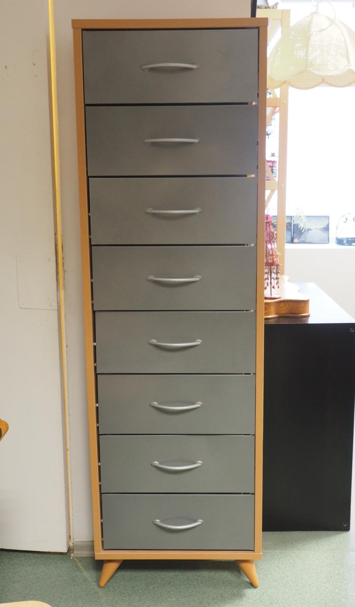 Saepuruplaadist/metallist riiul. 52x16.5 cm, kõrgus 170 cm. Seisukord: kasutatud, kulunud.