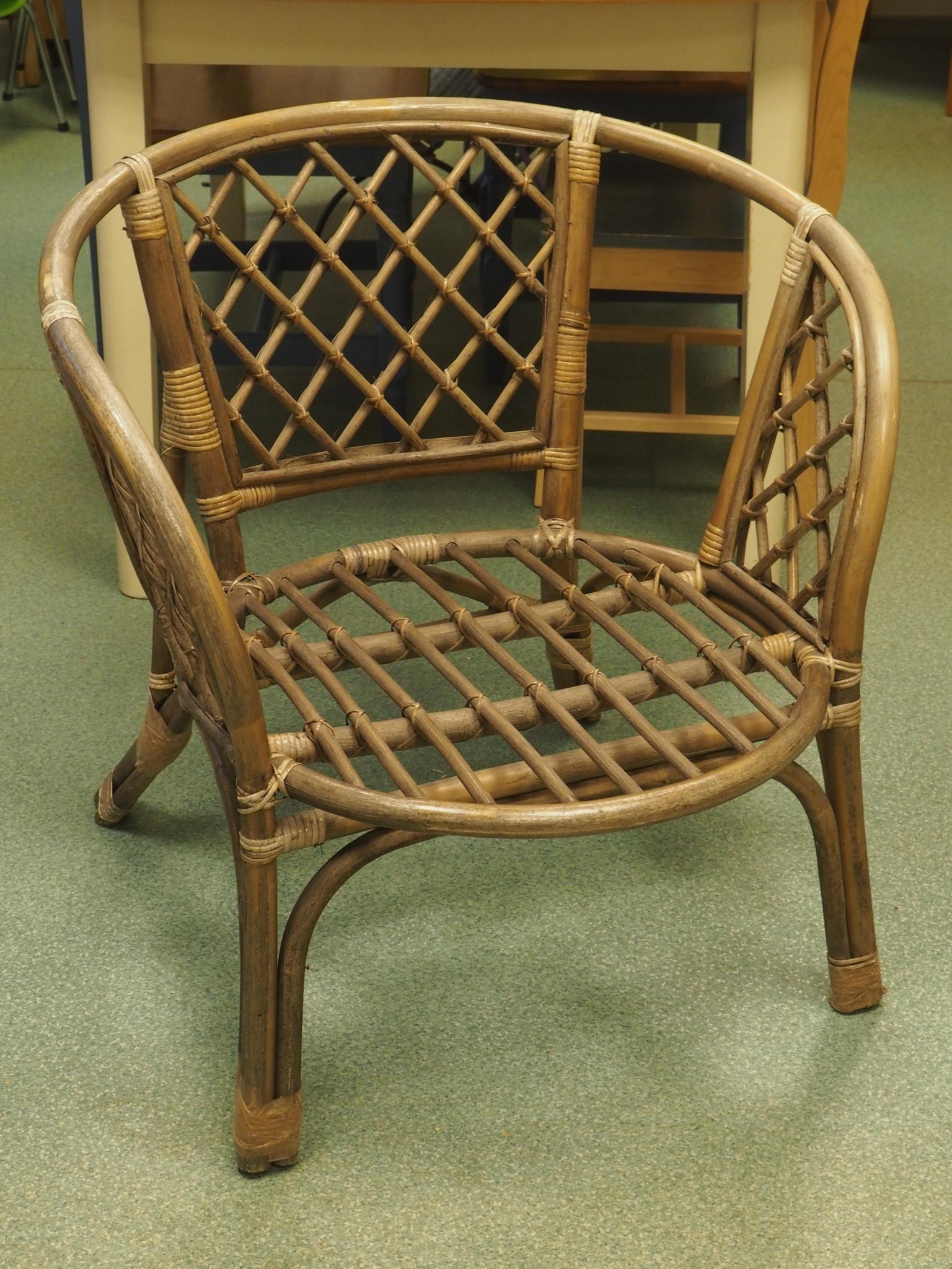 Rotangtool. Istme kõrgus 36 cm, seljatoe kõrgus 70 cm, laius 70 cm. Seisukord: kasutatud, heas korras.
