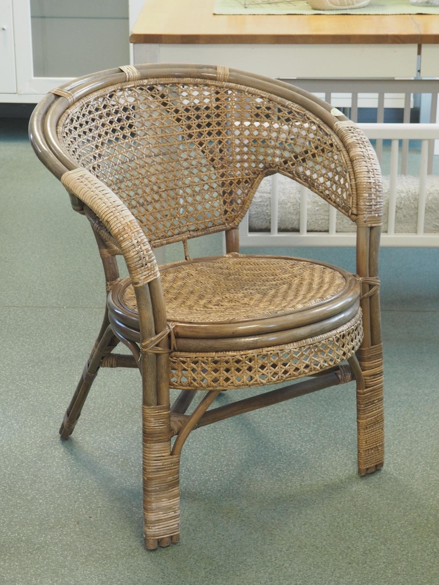 Rotangtool. Istme kõrgus 44.5 cm, seljatoe kõrgus 76 cm, laius 65 cm. Seisukord: kasutatud, heas korras.