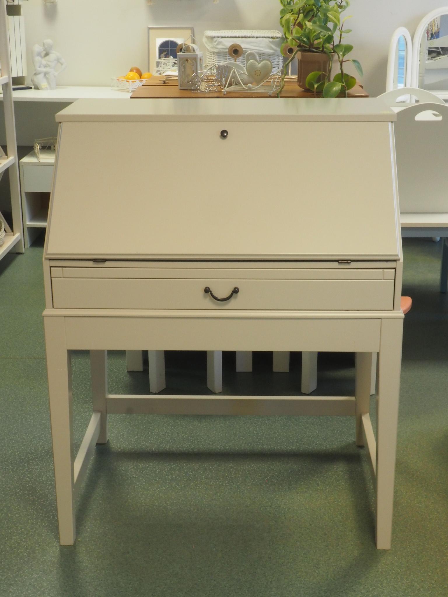 Saepuruplaadist sekretär. 81.5x57 cm, laua osa kõrgus 72.5 cm, kogu kõrgus 102 cm. Seisukord: kasutatud, heas korras.