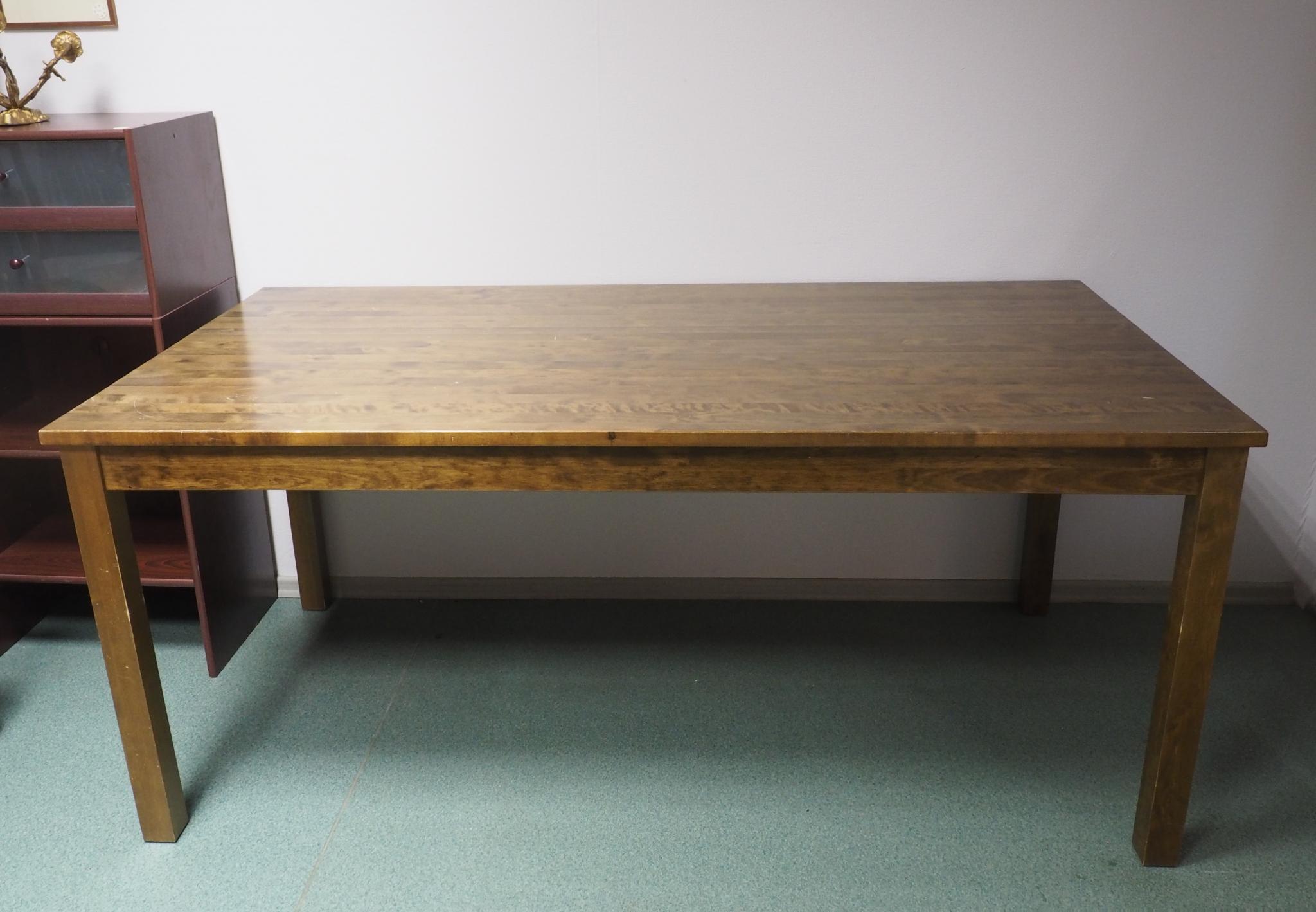 Puidust söögilaud. 175x90 cm, kõrgus 75.5 cm. Seisukord: kasutatud, kulunud.