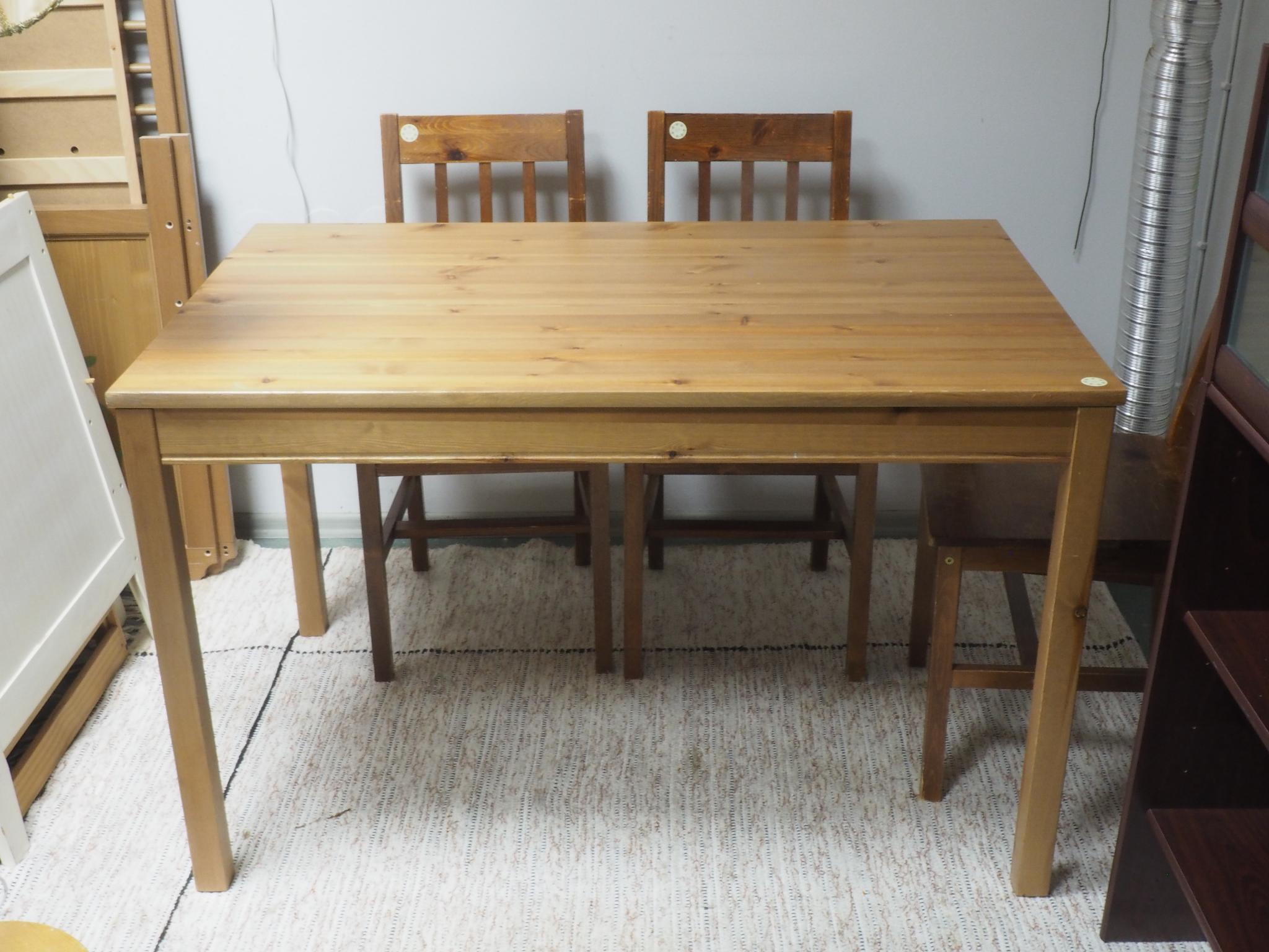 Puidust söögilaud. 118x73 cm, kõrgus 73 cm. Seisukord: kasutatud, heas korras.