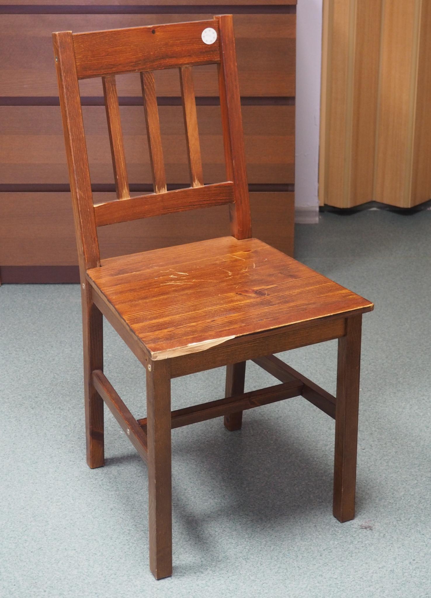 Puidust söögitool. Istme kõrgus 44.5 cm, seljatoe kõrgus 86.5 cm, laius 41.5 cm. Seisukord: kasutatud, kulunud.