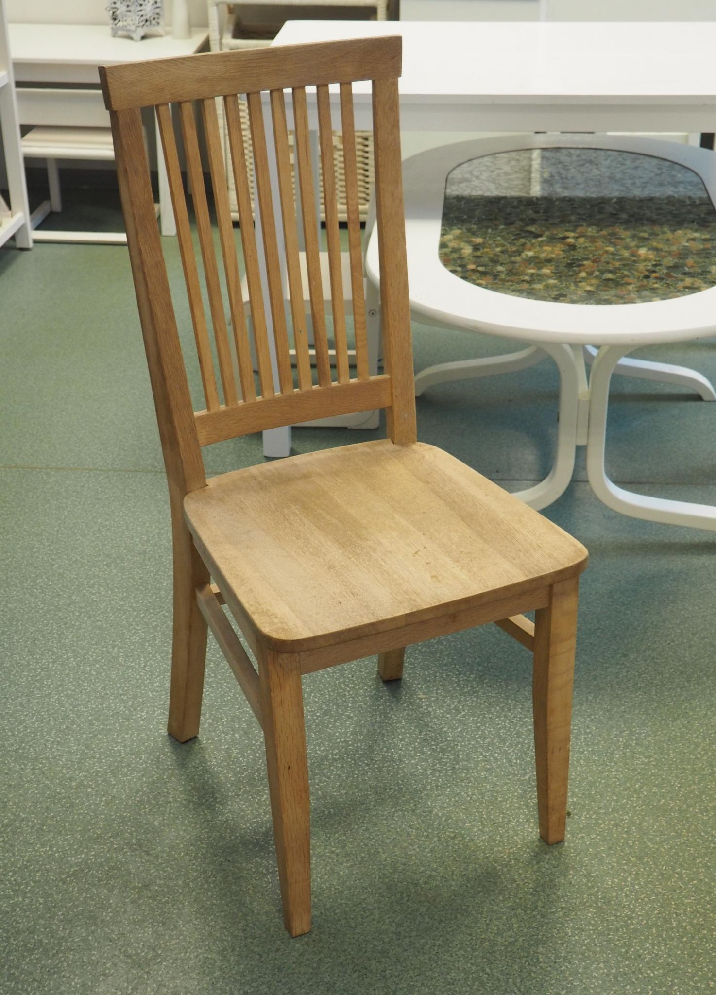 Puidust söögitool. Istme kõrgus 44 cm, seljatoe kõrgus 96.5 cm, laius 42 cm. Seisukord: kasutatud, kulunud.