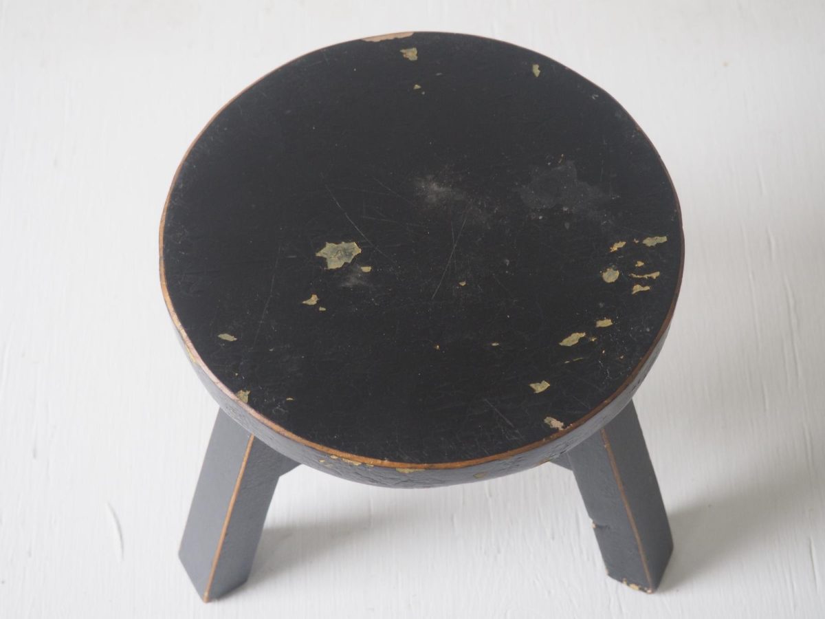 Pisike puidust taburet. Läbimõõt 22 cm, kõrgus 22 cm. Seisukord: kasutatud, kulunud.