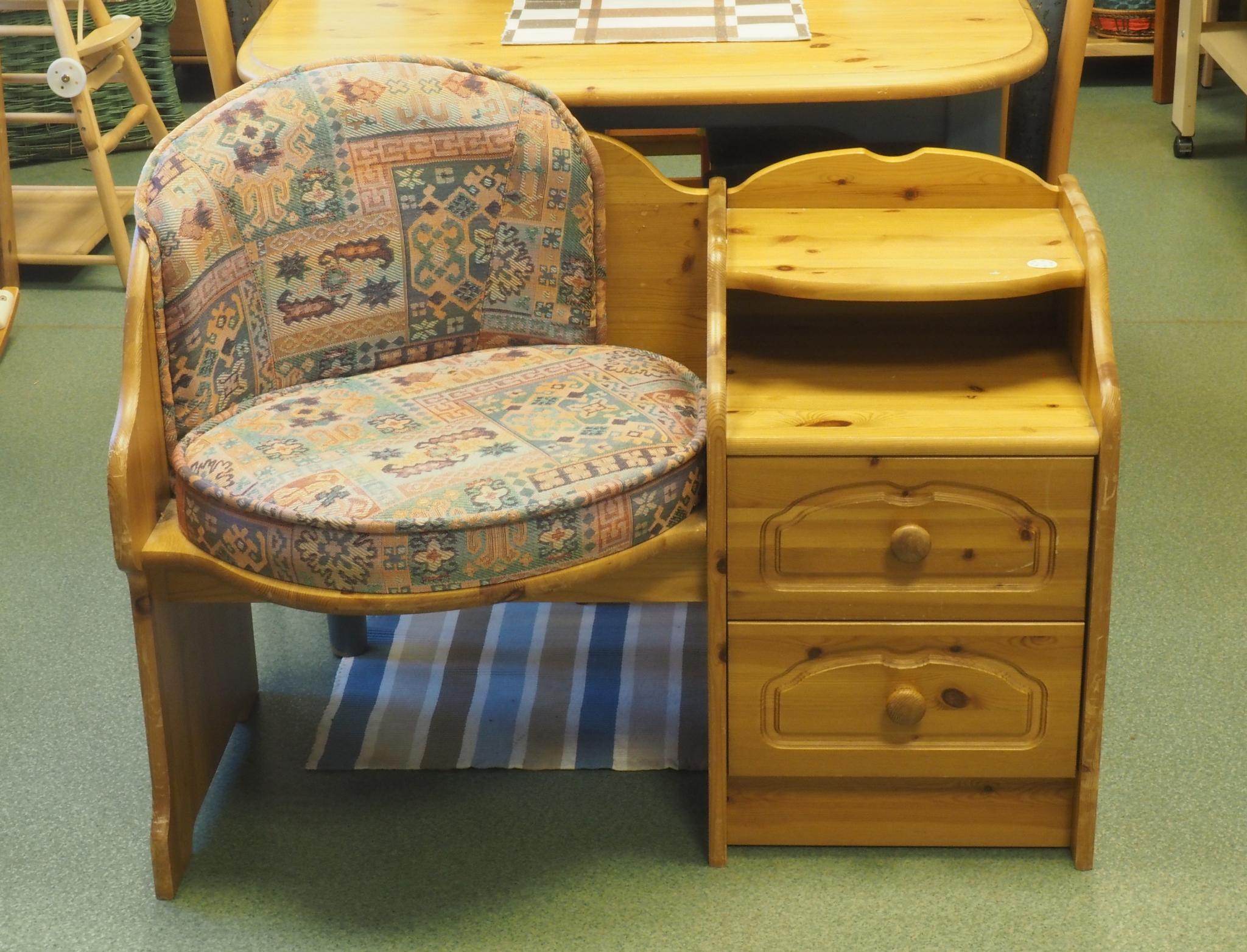 Puidust telefonilaud. 95.5x53 cm, istme kõrgus 45 cm, kogu kõrgus 76 cm. Seisukord: kasutatud, kulunud.