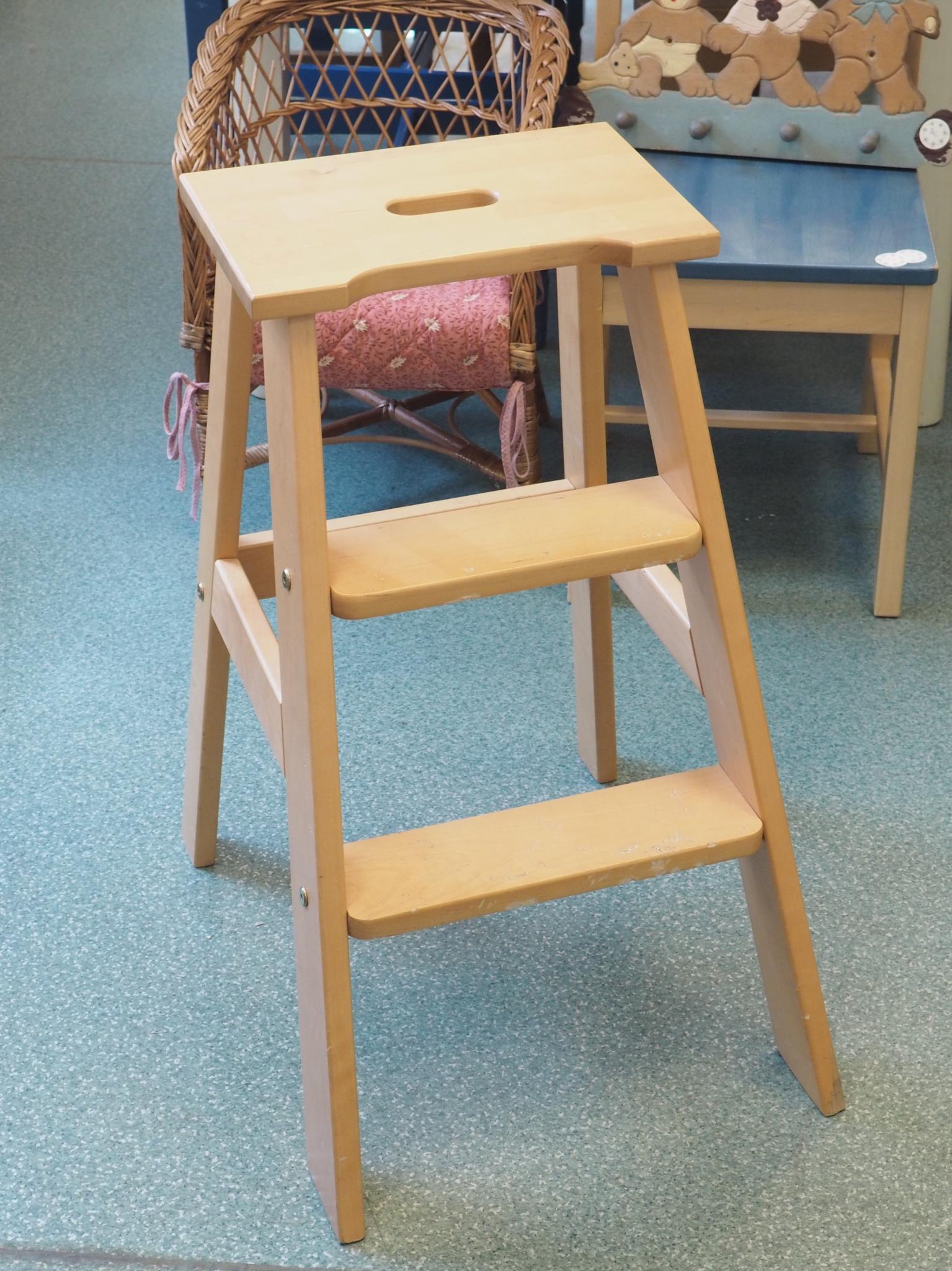 Puidust trepp/redel. Kõrgus 62 cm. Seisukord: kasutatud, kulunud.