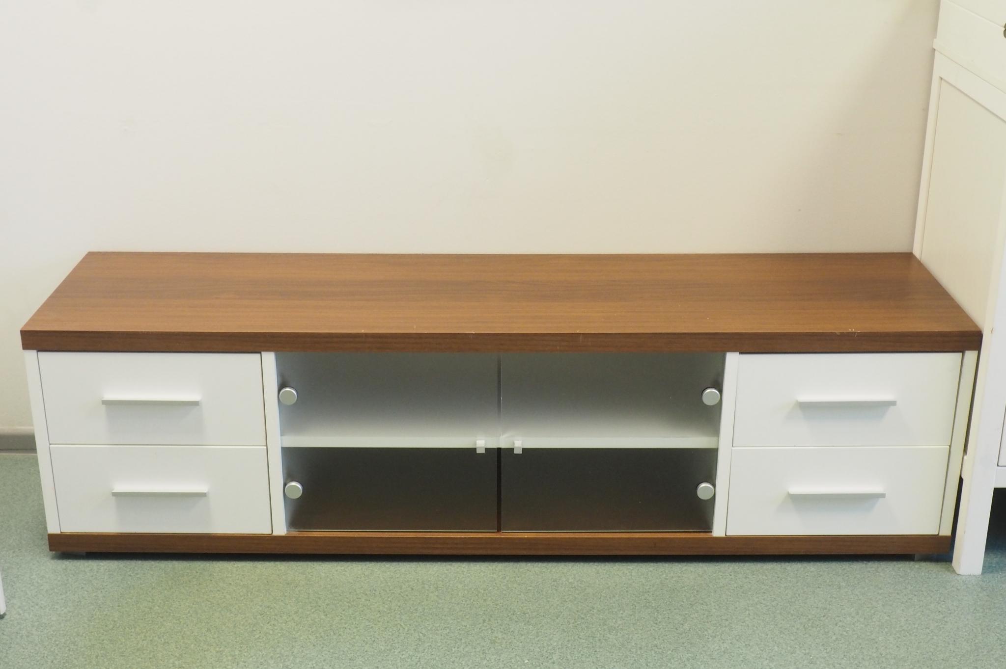 Saepuruplaadist TV-alus. 170x44.5 cm, kõrgus 47.5 cm. Seisukord: kasutatud, kulunud.
