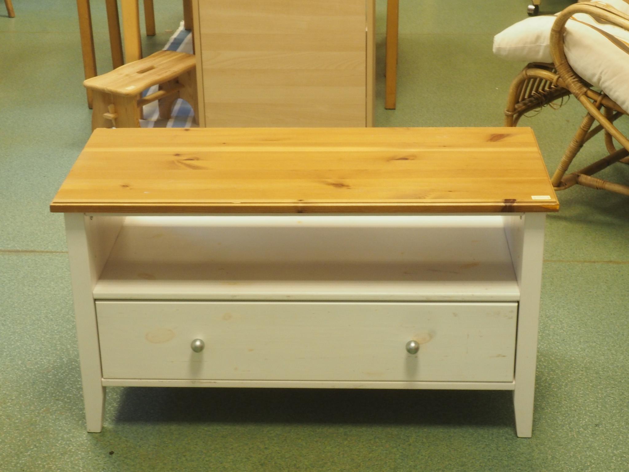 Puidust TV-alus. 85x38 cm, kõrgus 47 cm. Seisukord: kasutatud, kulunud.