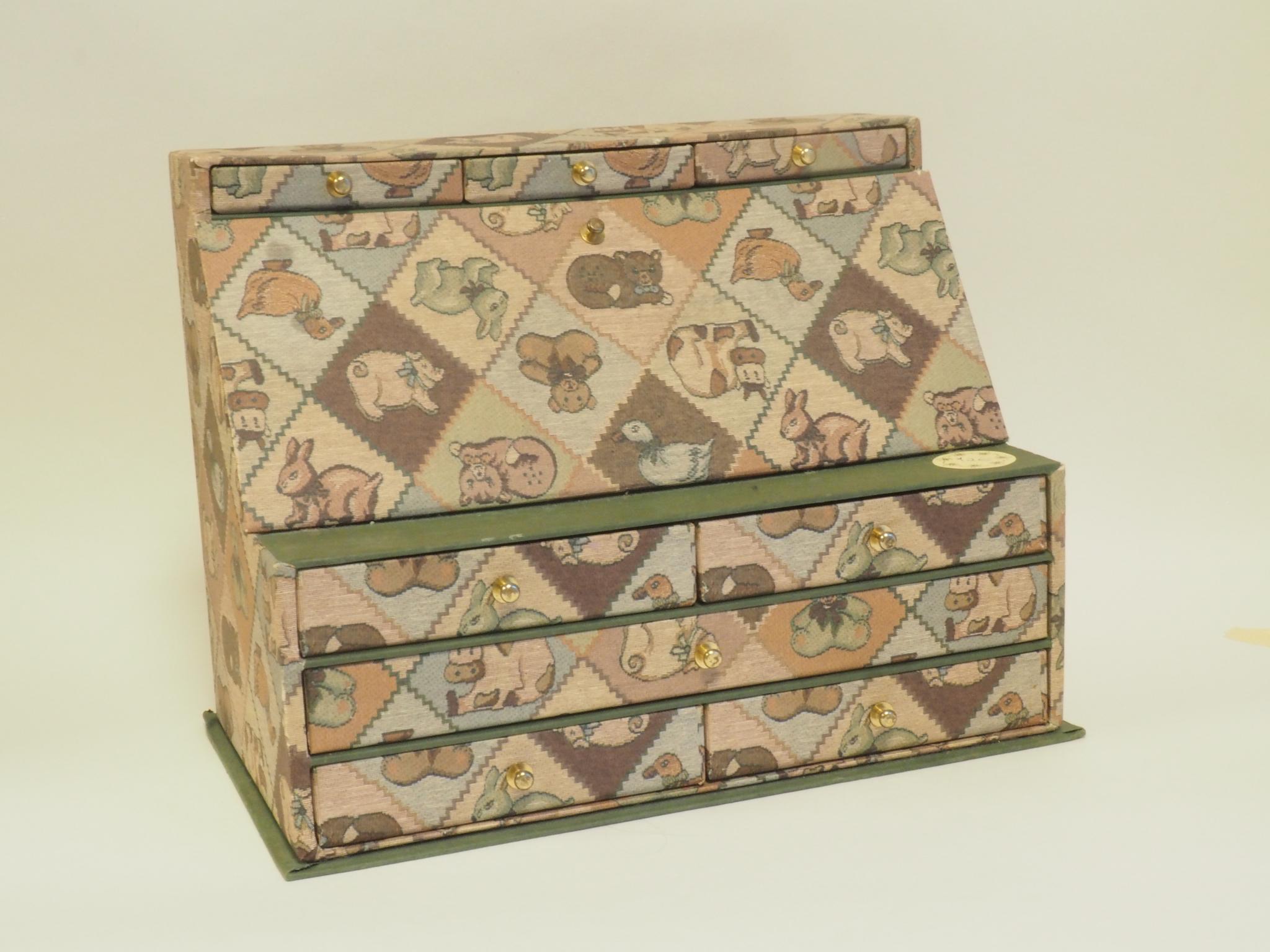 Väike riidest kapike. 27.5x16 cm, kõrgus 21.5 cm. Seisukord: kasutatud, kulunud.